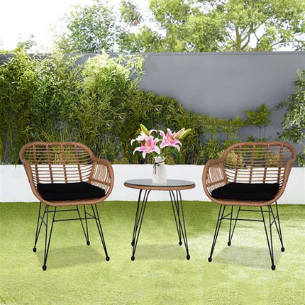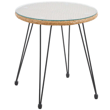 1 x Set Arredo Giardino in Rattan con Tavolino Ripiano in Vetro e 2 Sedie da Esterno Patio