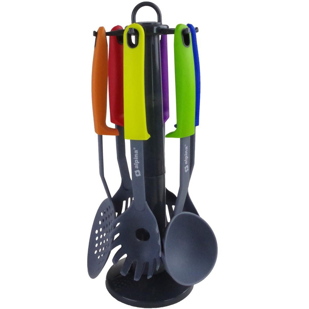 Set Da Cucina 7PZ Mestolo Spatola Cucchiaio Spaghetti Schiumaiola Siviera Alpina