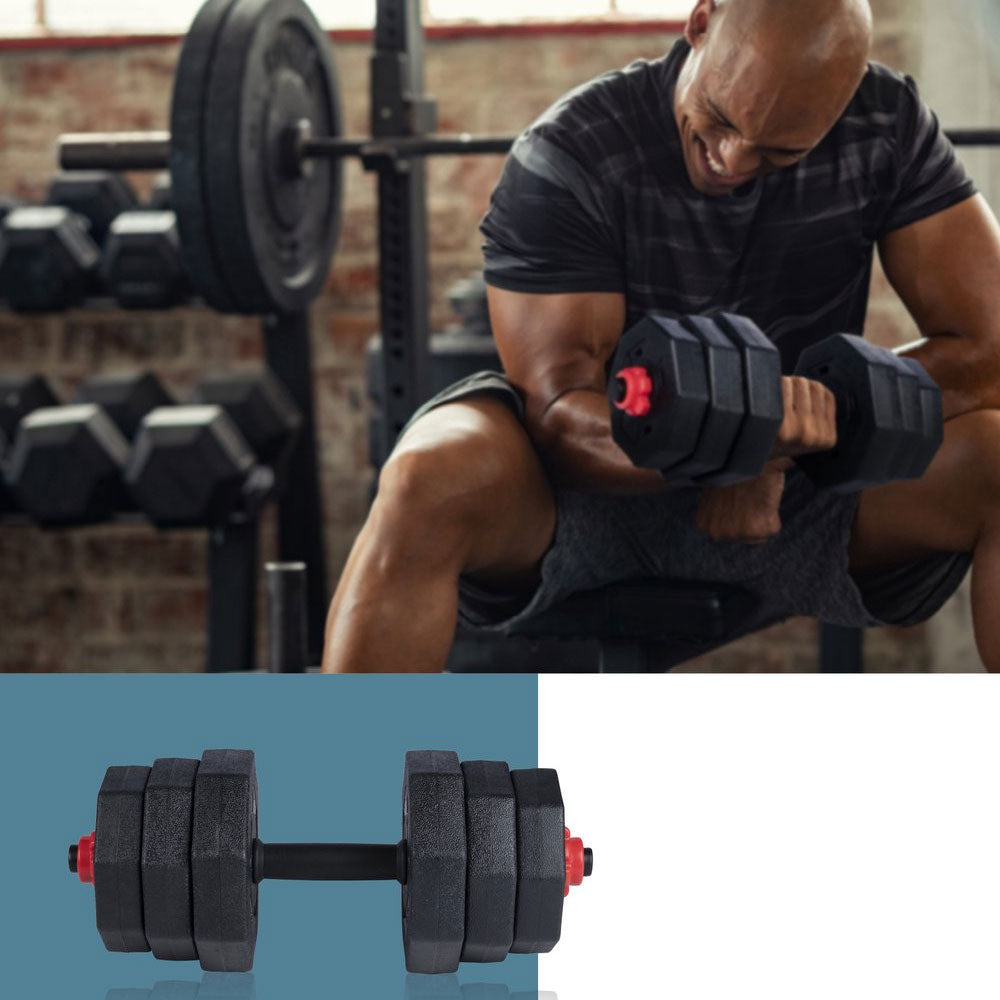 Set Manubri Convertibili in Bilanciere 19Kg Totali 12 Dischi Pesi Plastica Dura