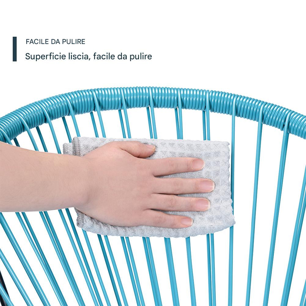 I materiali resistenti e la superficie liscia del tavolino in vetro facilitano la pulizia quotidiana, permettendo di mantenere il set sempre in ottime condizioni con il minimo sforzo.