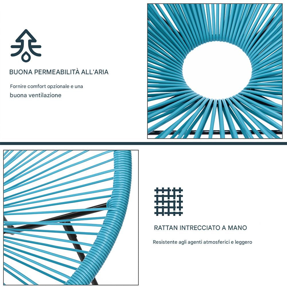 1 x Set Patio in Polyrattan con 2 Sedie e 1 Tavolo per Giardino Esterno Azzurro