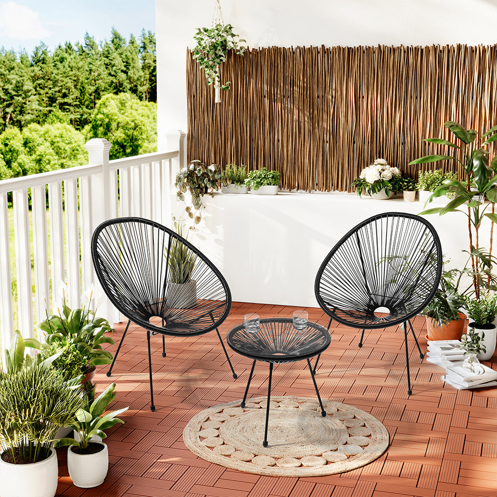 1 x Set Patio in Polyrattan con 2 Sedie e 1 Tavolo per Giardino Esterno Nero