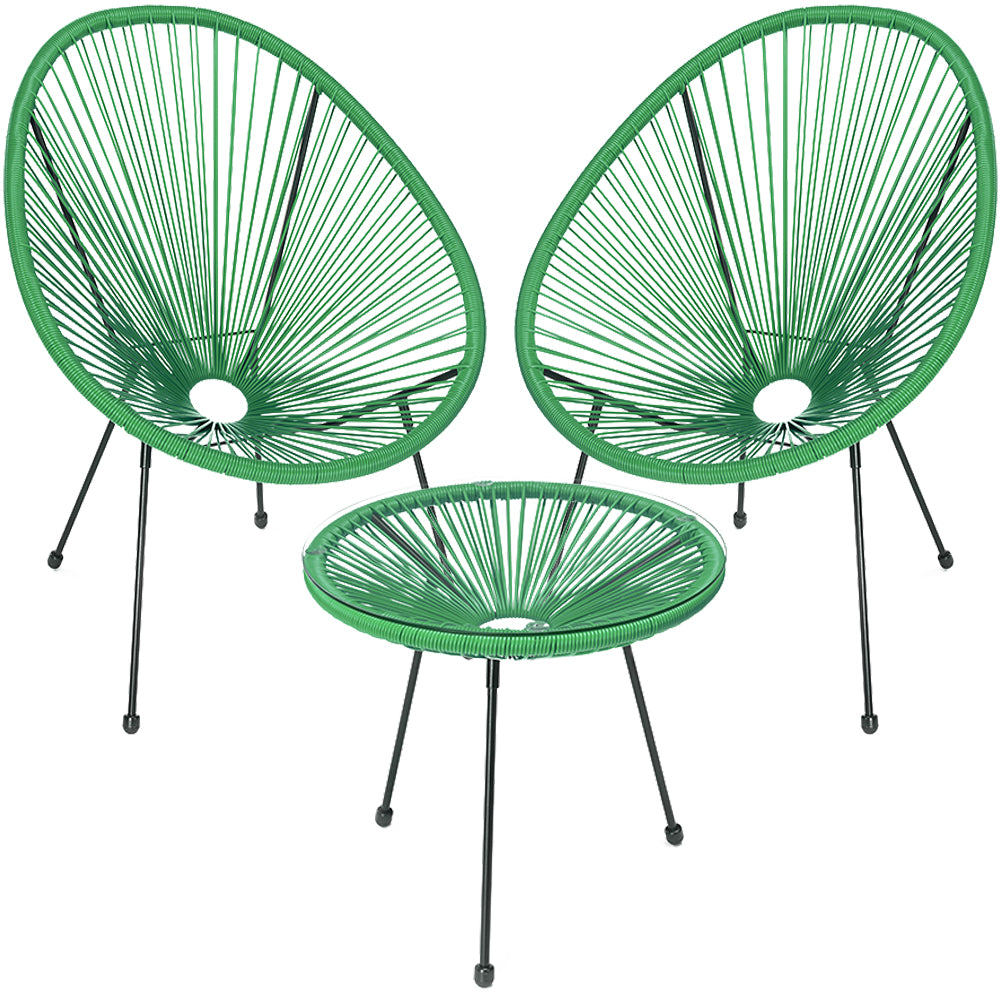 1 x Set Patio in Polyrattan con 2 Sedie e 1 Tavolo per Giardino Esterno Verde Menta