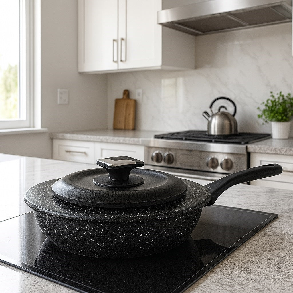 Set Pentole 6pz Pietra con Coperchio Magico Antiodore Padelle 24 28 Casseruola 24 Induzione