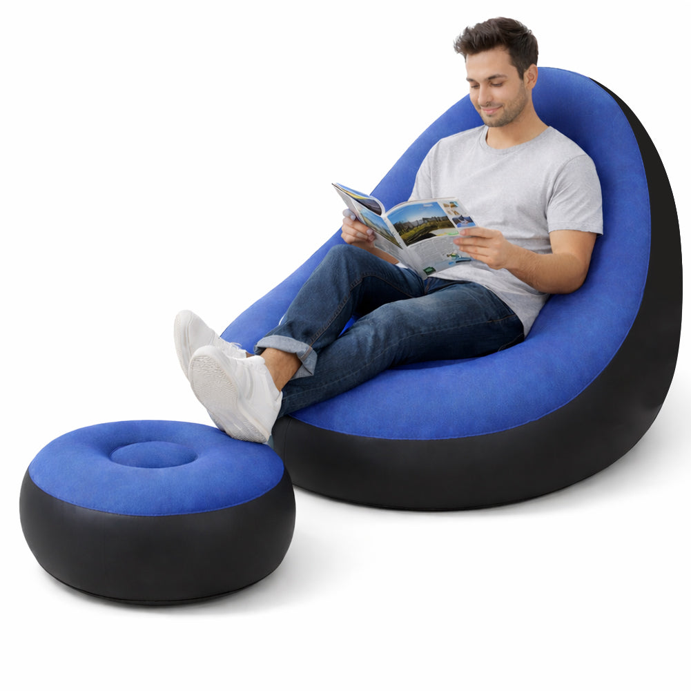 1 x Set Poltrona e Poggiapiedi Gonfiabile Ergonomico Blu da Esterno ed Interno