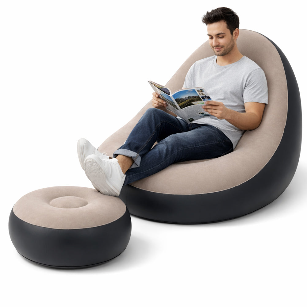 1 x Set Poltrona e Poggiapiedi Gonfiabile Ergonomico Grigio da Esterno ed Interno