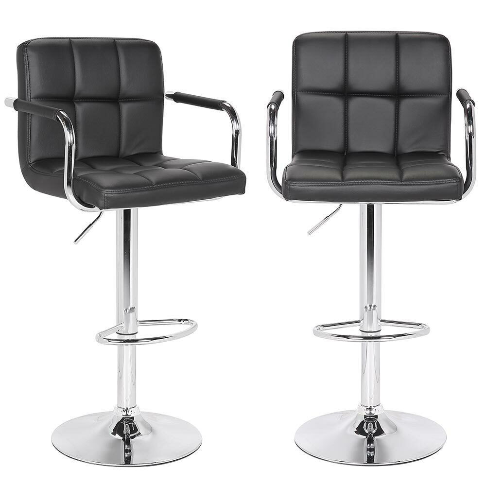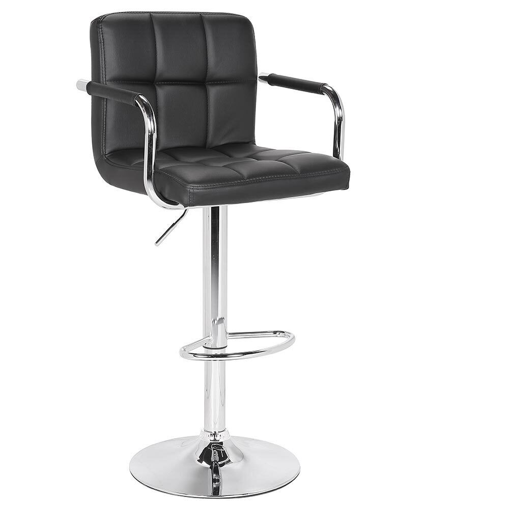 1 x Set Sgabelli Cucina Seduta Pelle Imbottita Sgabello con Braccioli Casa Bar Nero