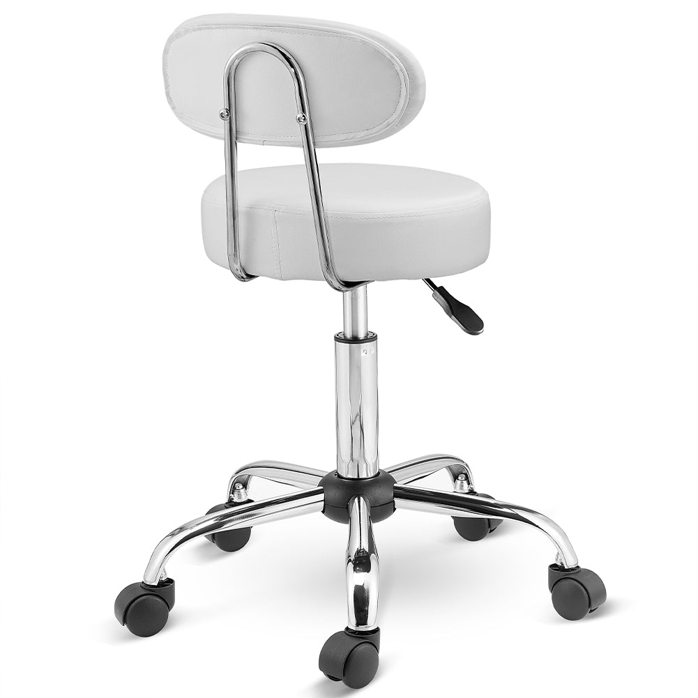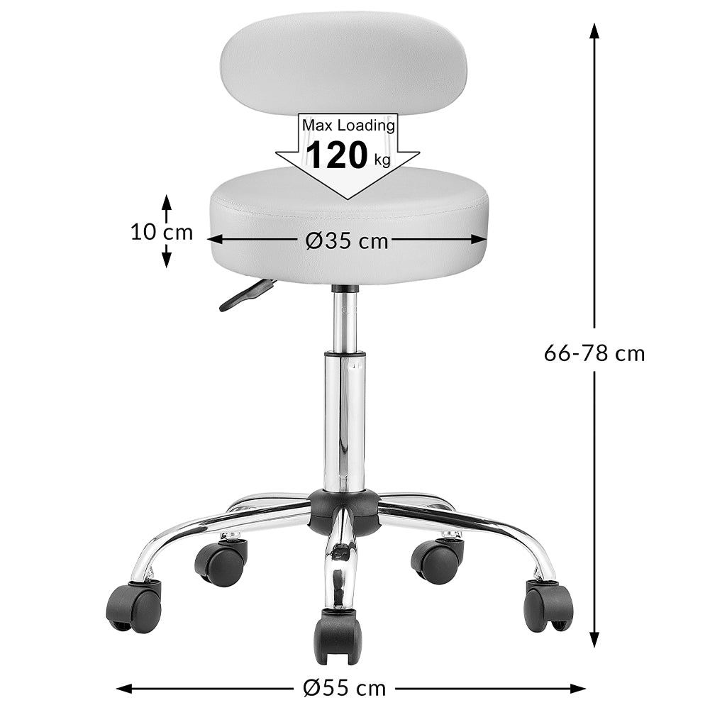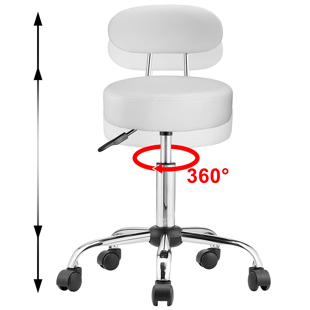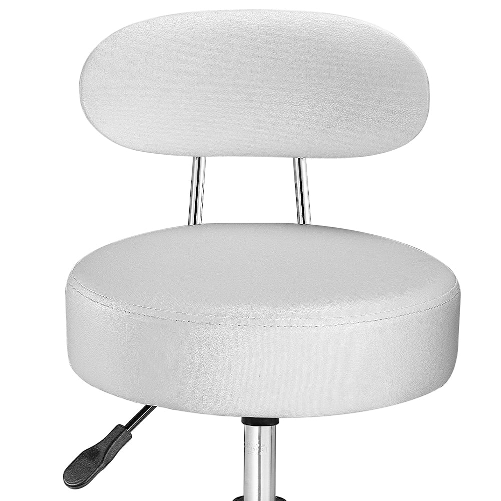 1 x Sgabello con ruote e schinale Estetista Sedia lavoro girevole Ecopelle Bianco
