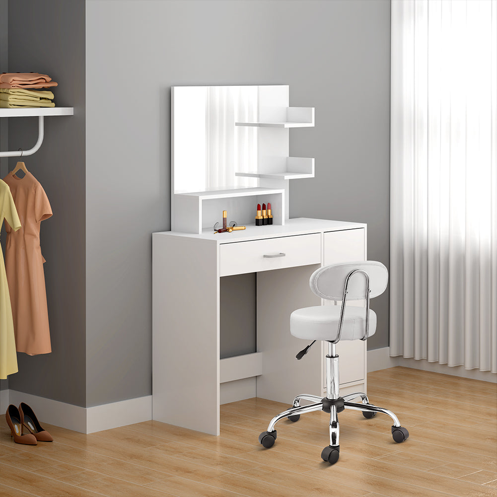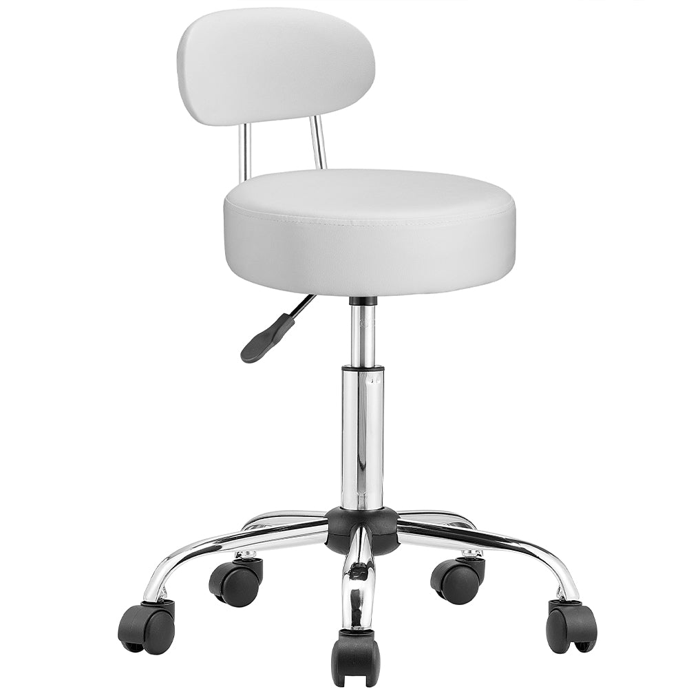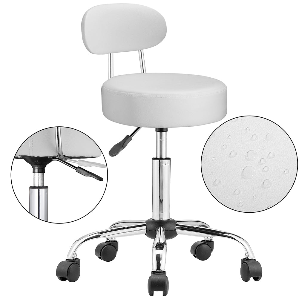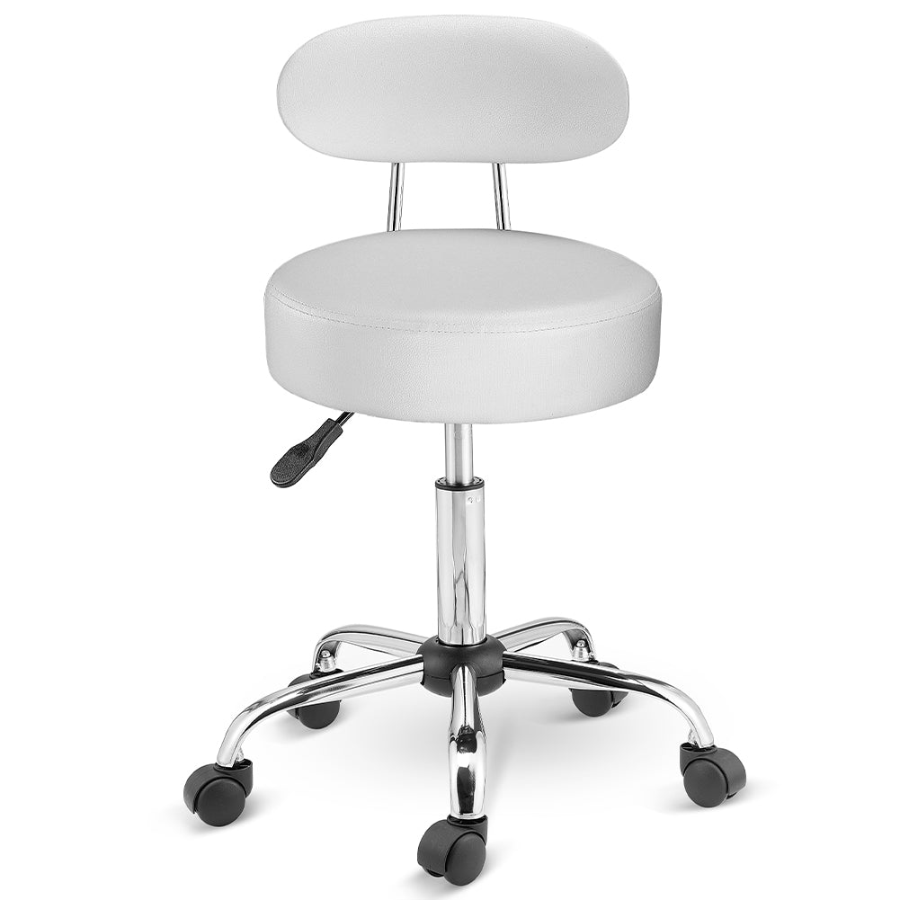 1 x Sgabello con ruote e schinale Estetista Sedia lavoro girevole Ecopelle Bianco
