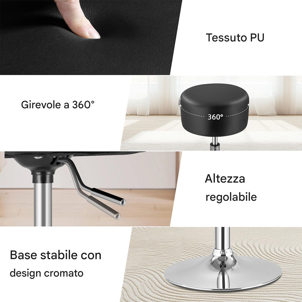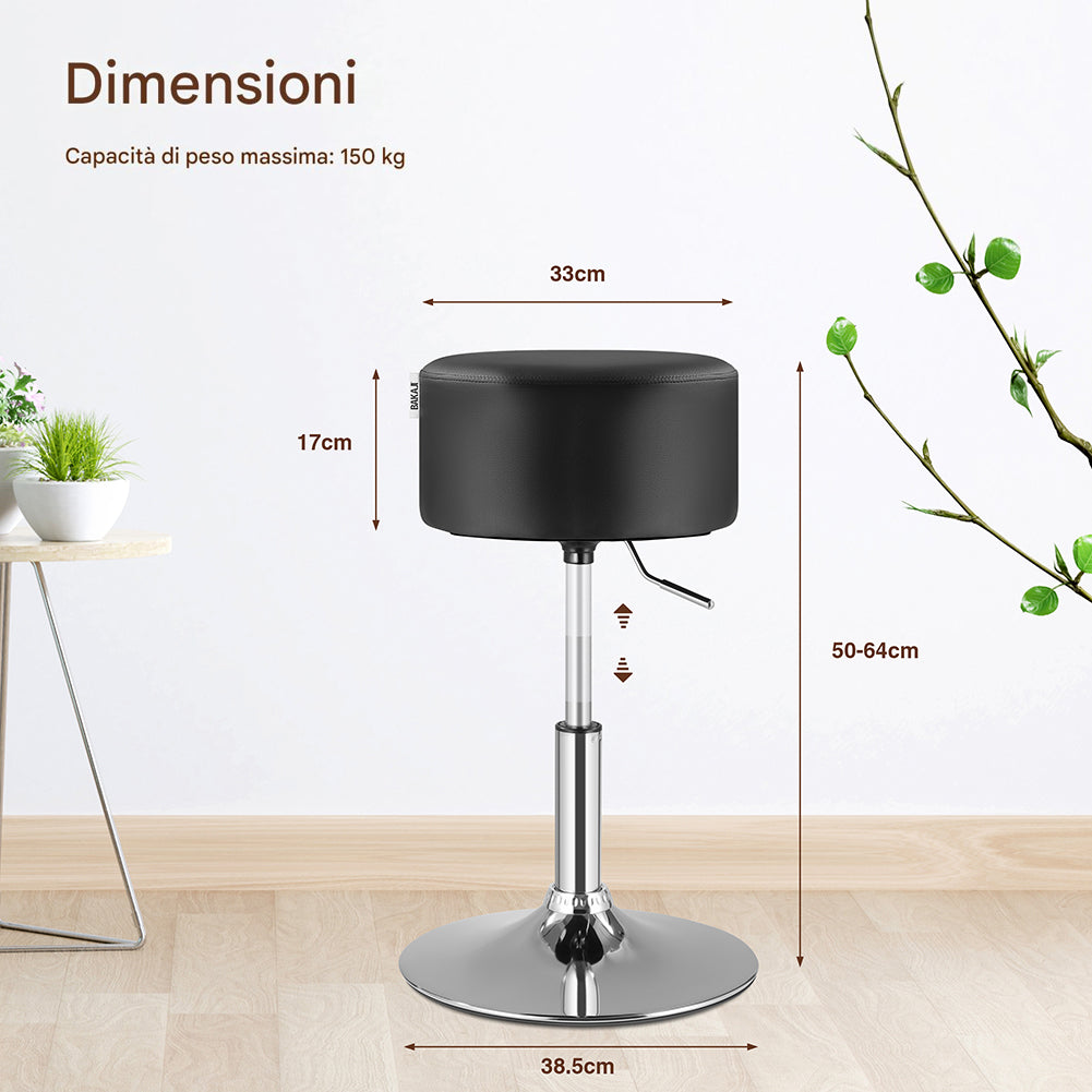 1 x Sgabello Make Up Toeletta Seduta Comoda Sgabellino Rotante Nero Portata 130kg
