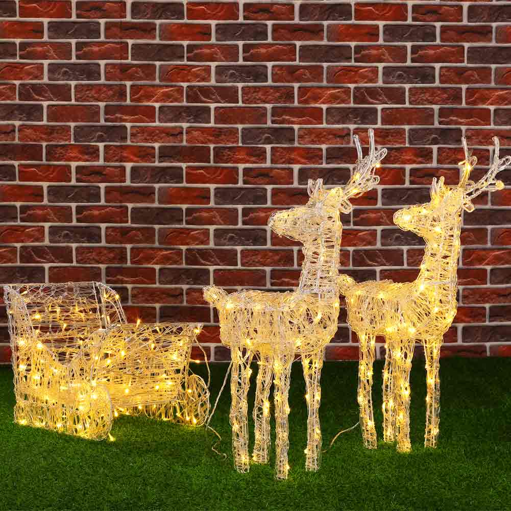1 x Slitta e Renne Natalizie 3D Luminose 240 LED Bianco Caldo per Esterno a batterie