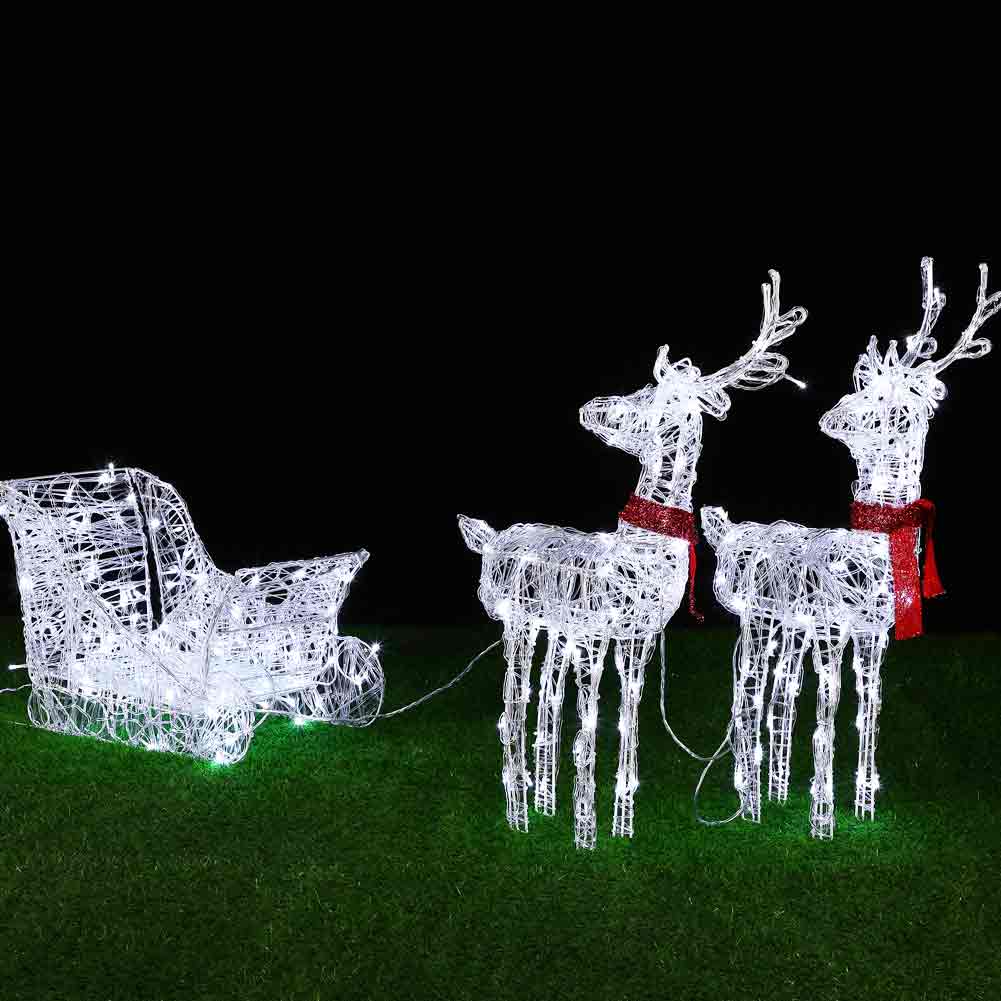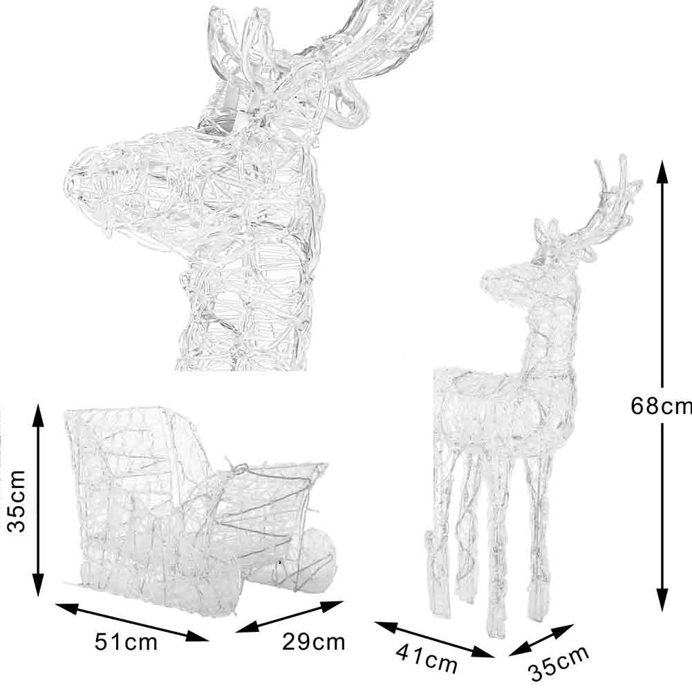 1 x Slitta e Renne Natalizie 3D Luminose 240 LED Bianco Freddo per Esterno a batterie