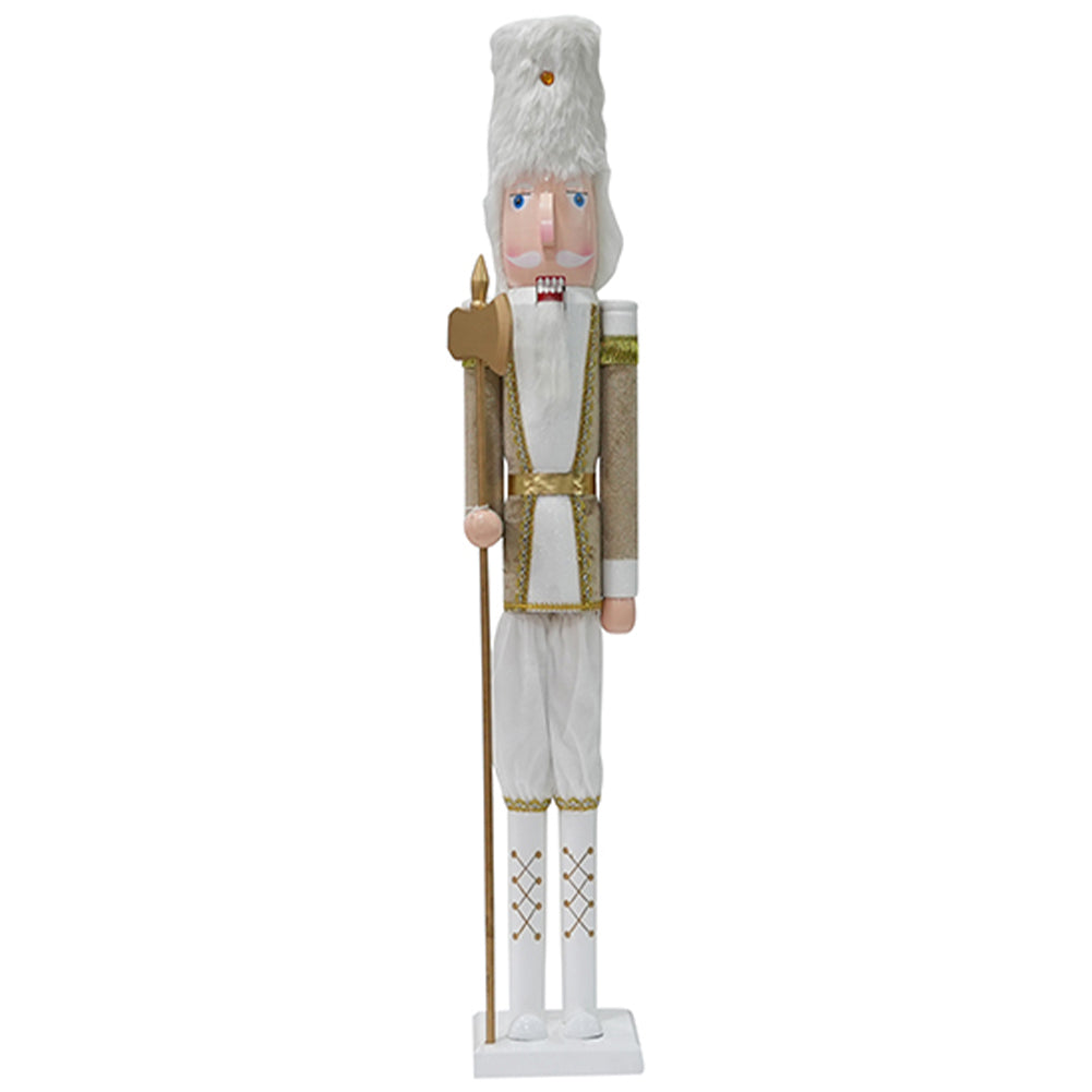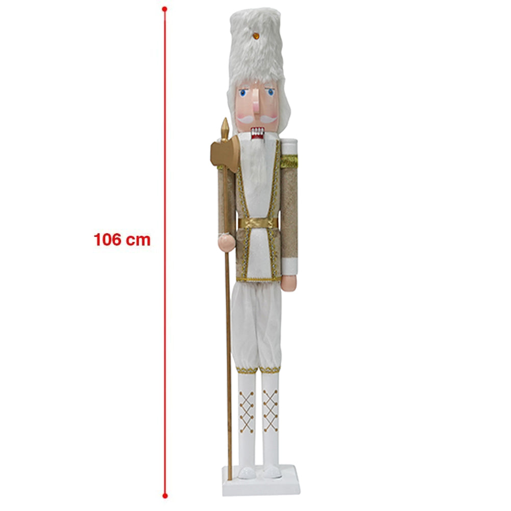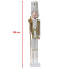 Soldato Schiaccianoci di Natale in Legno 106 cm Decorazioni Addobbo Bianco e Oro