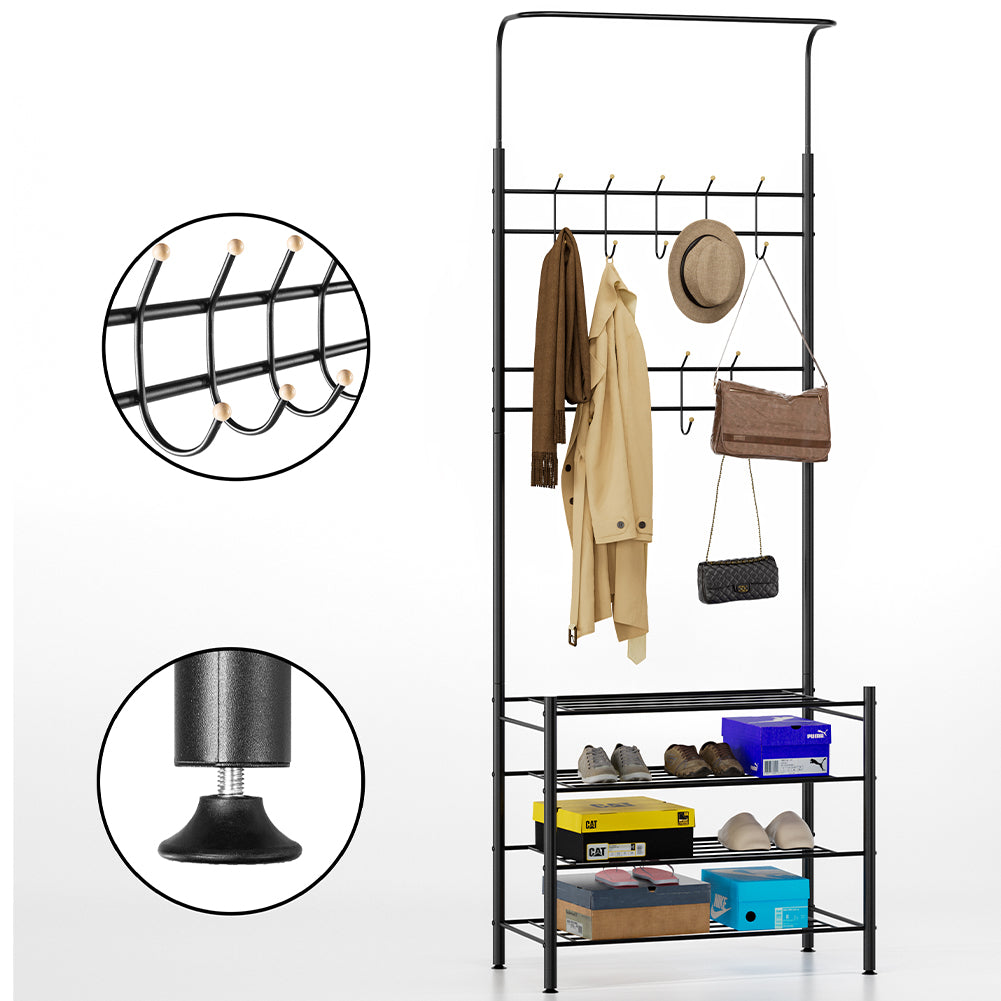Stand Appendiabiti da Ingresso Struttura Metallo 9 Ganci con scarpiera 4 Ripiani
