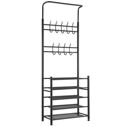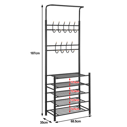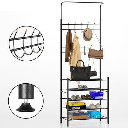 Stand Appendiabiti da Ingresso Struttura Metallo 9 Ganci con scarpiera 5 Ripiani