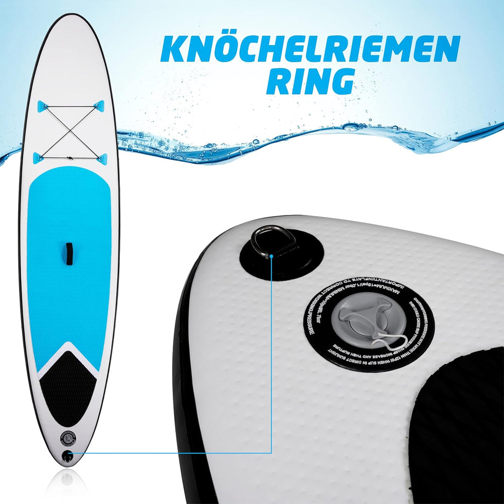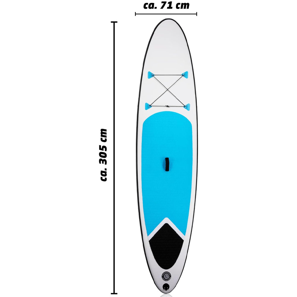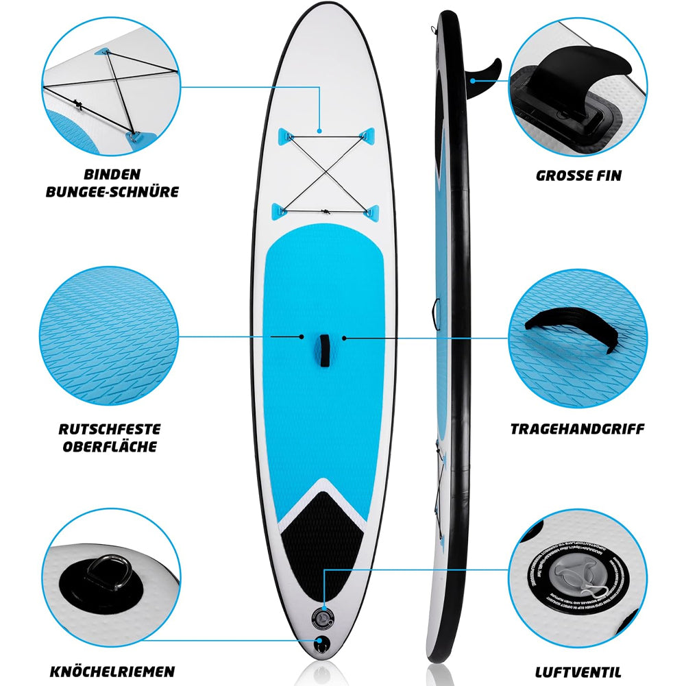 Nel set troverai la tavola da SUP gonfiabile, una pagaia da SUP regolabile, borsa per il trasporto, pompa a mano per gonfiare la tavola da SUP e un kit di riparazione.