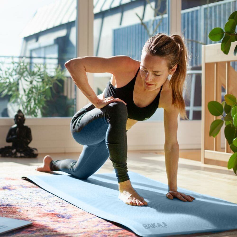 Il nuovo tappetino da Yoga Bakaji è fornito di doppia superficie testurizzata antiscivolo su entrambi i lati che garantiscono un eccellente aderenza sia del corpo o degli oggetti al tappeto sia un eccezionale aderenza del tappetino al suolo, assicurando una perfetta stabilità durante l'esecuzione dei tuoi esercizi, inoltre ogni lato è caratterizzato da una texture e da un colore diverso, dandoti modo di scegliere la superficie che più preferisci.