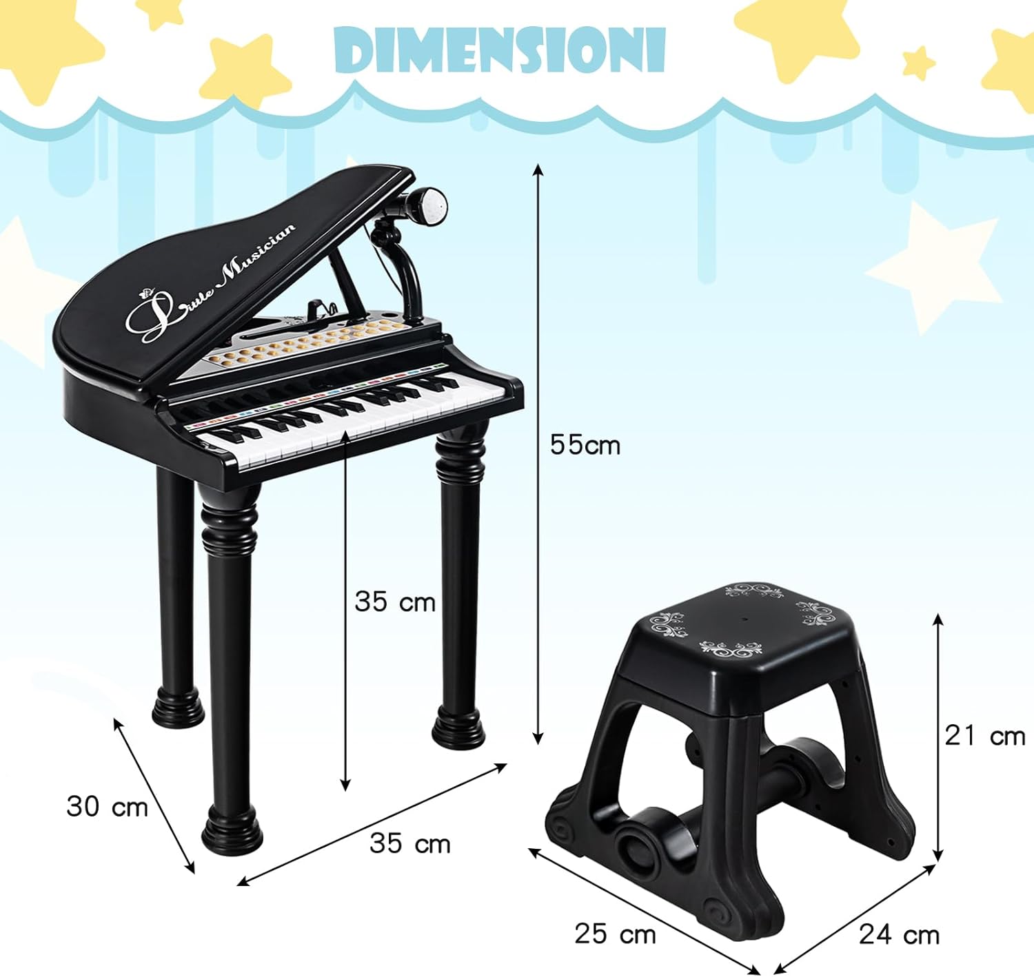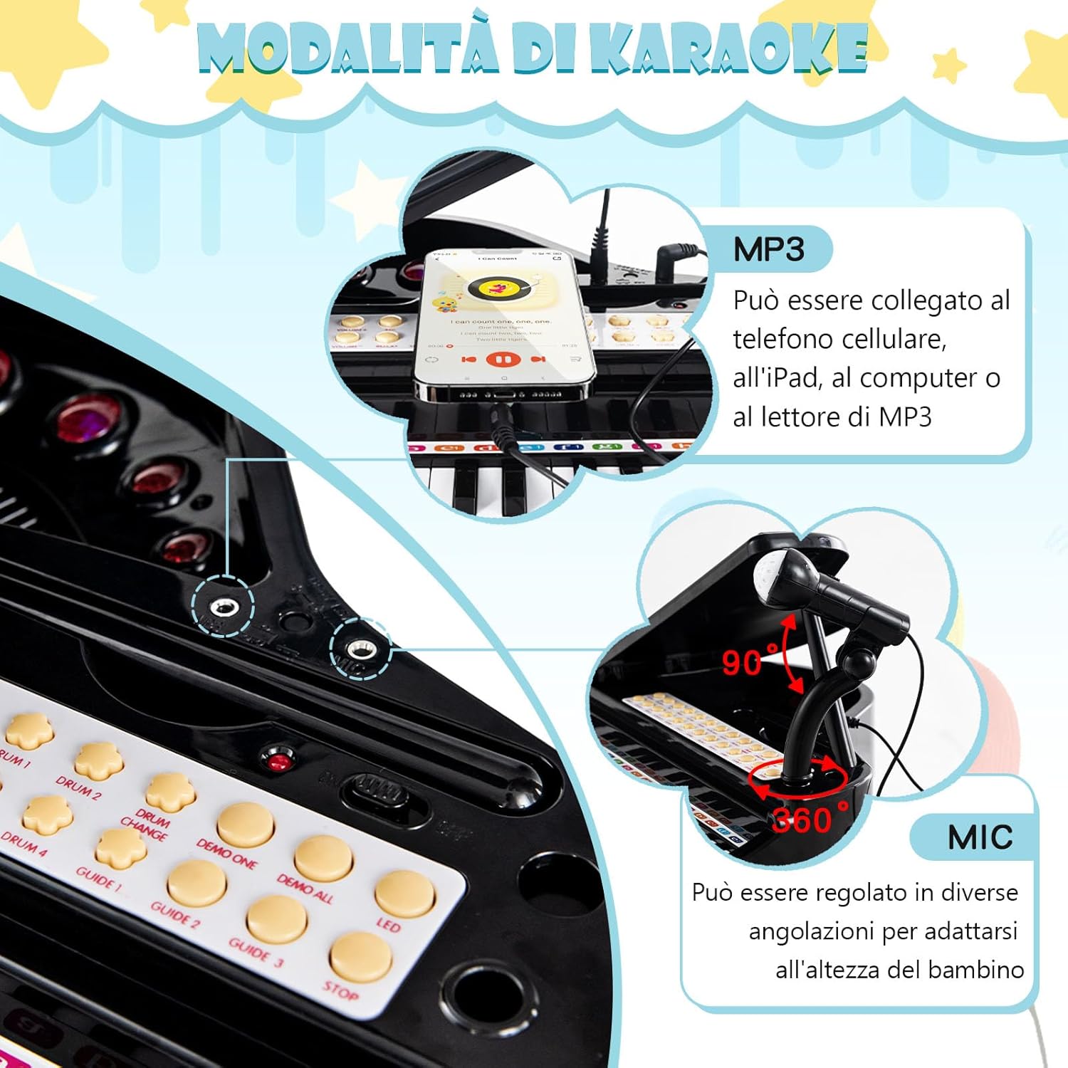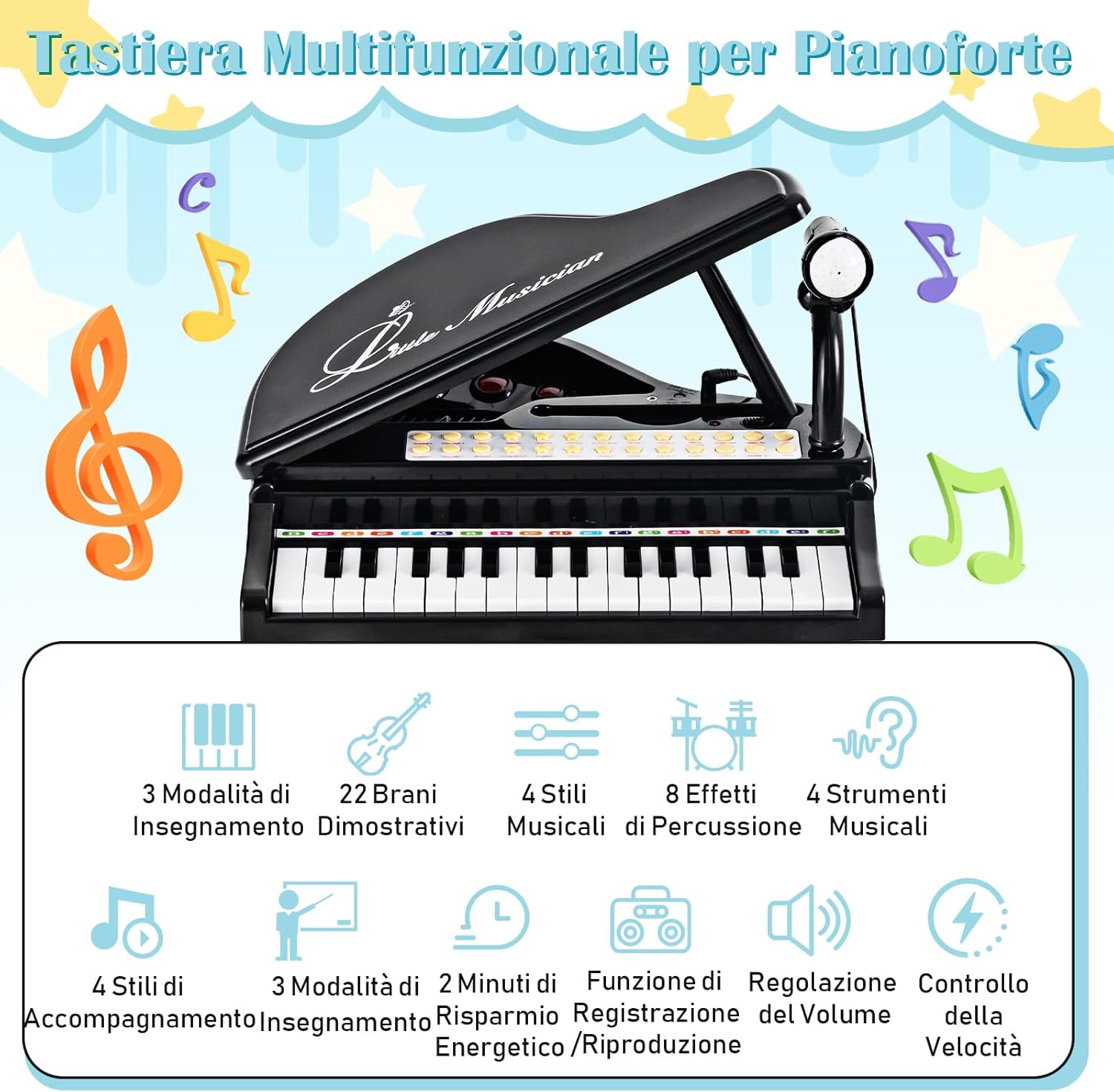 1 x Tastiera Musicale Giocattolo Pianoforte per Bambini Nero 31 Tasti e Microfono