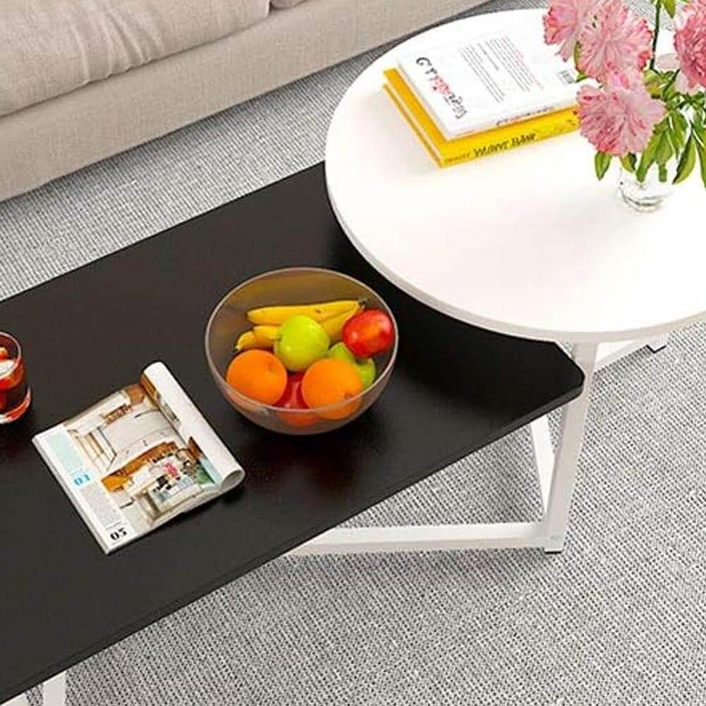 1 x Tavolino Basso da Caffè 2 Ripiani Design Luxury Tavolo da Salotto Bianco e Nero