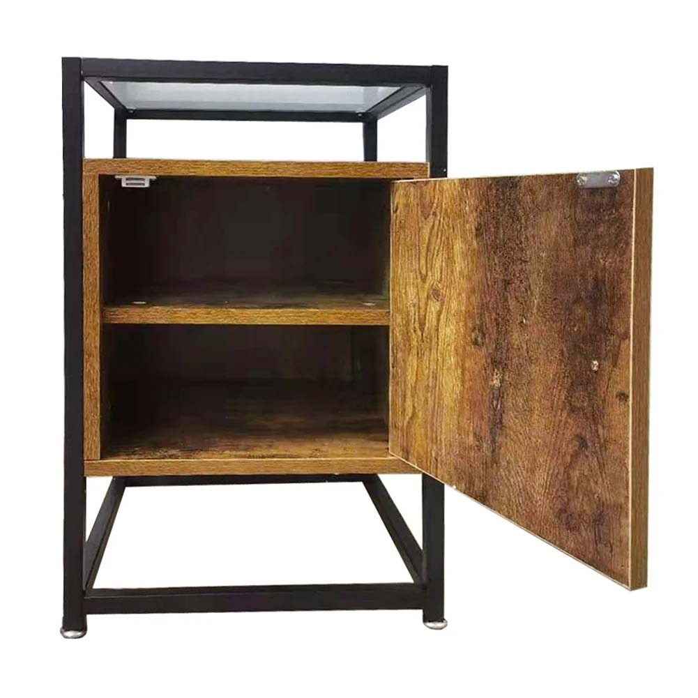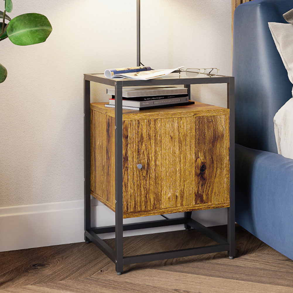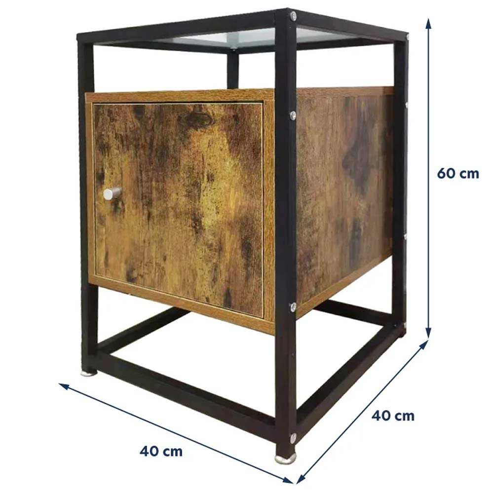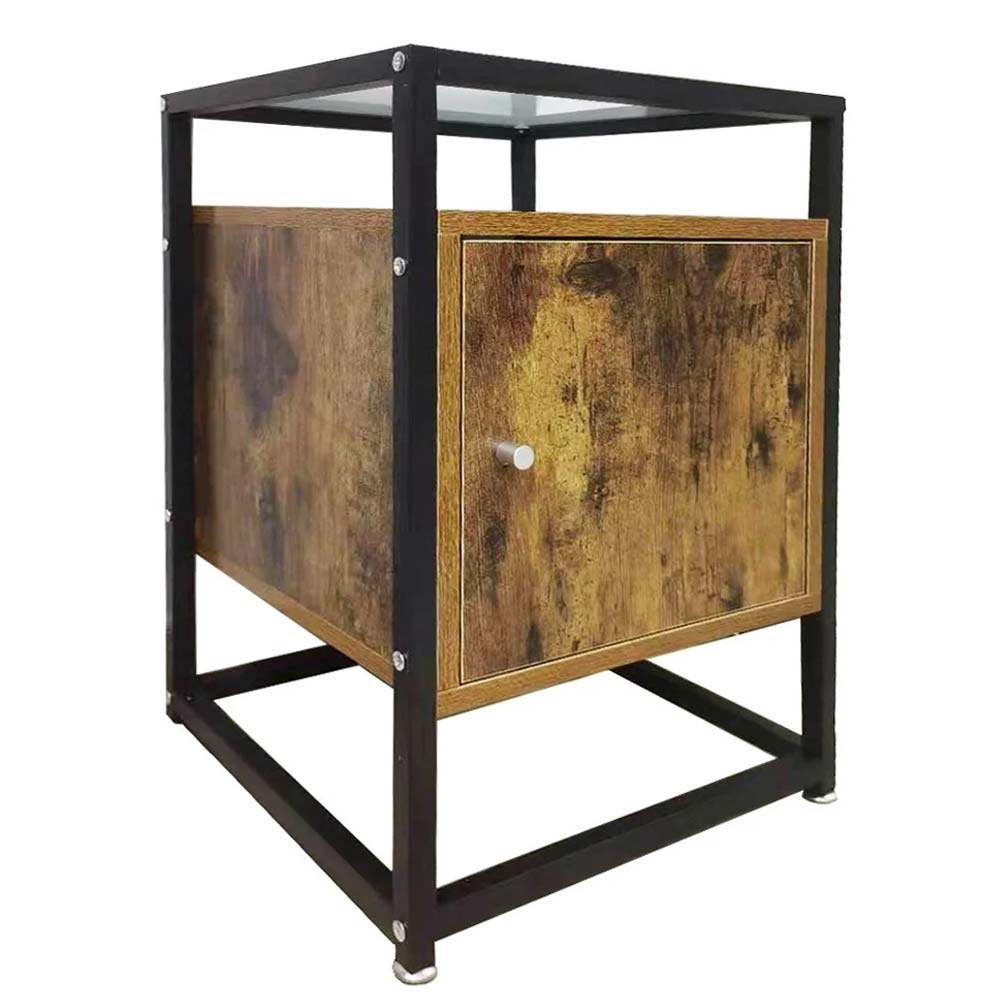 Tavolino Divano Mobiletto Comodino in Metallo Legno e Vetro con Anta e Ripiano
