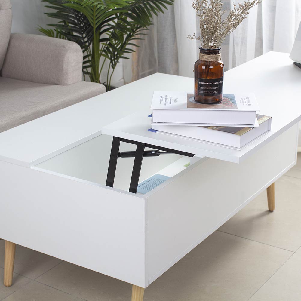 Tavolino Soggiorno con Rialzo Contenitore Tavolo Salotto Moderno Apribile Bianco
