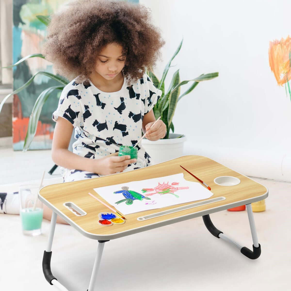 Tavolino Vassoio da Letto Divano per Notebook PC Tablet Pieghevole Leggio Noce