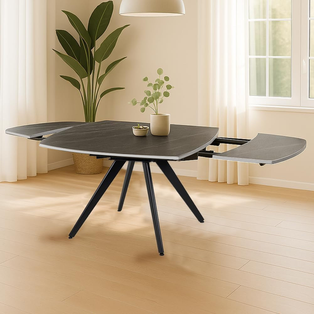 1 x Tavolo Allungabile Rotante Ceramica Effetto Marmo Nero da 6-8 Posti Salvaspazio