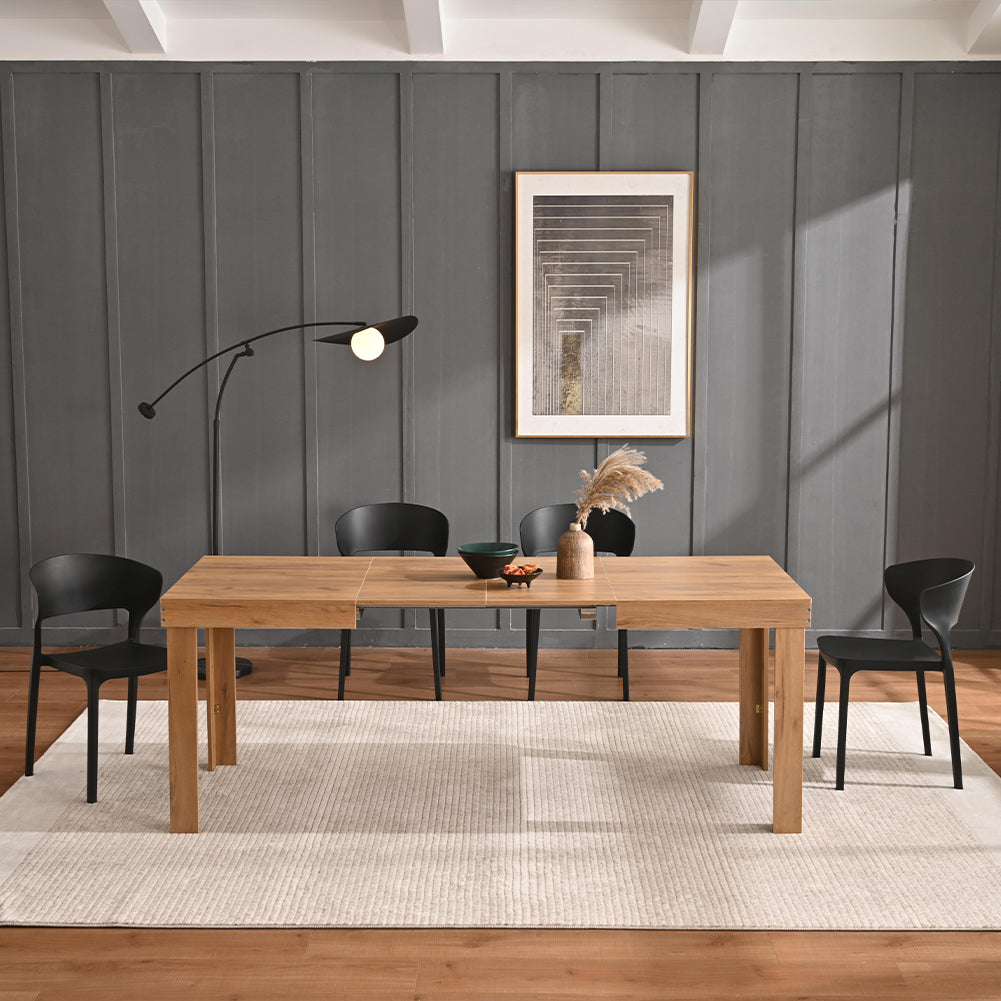 Il meccanismo di allungamento è pratico e intuitivo: in pochi secondi il tavolo si trasforma, estendendo la superficie fino a 200 cm per ospitare comodamente più persone, ideale per cene in famiglia o con amici.