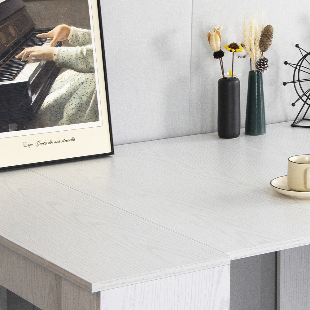 Elevata sicurezza e stabilità questo tavolo scrivania multiuso per la casa è realizzato interamente in legno MDF di altissima qualità in un elegantissimo colore bianco frassinato.