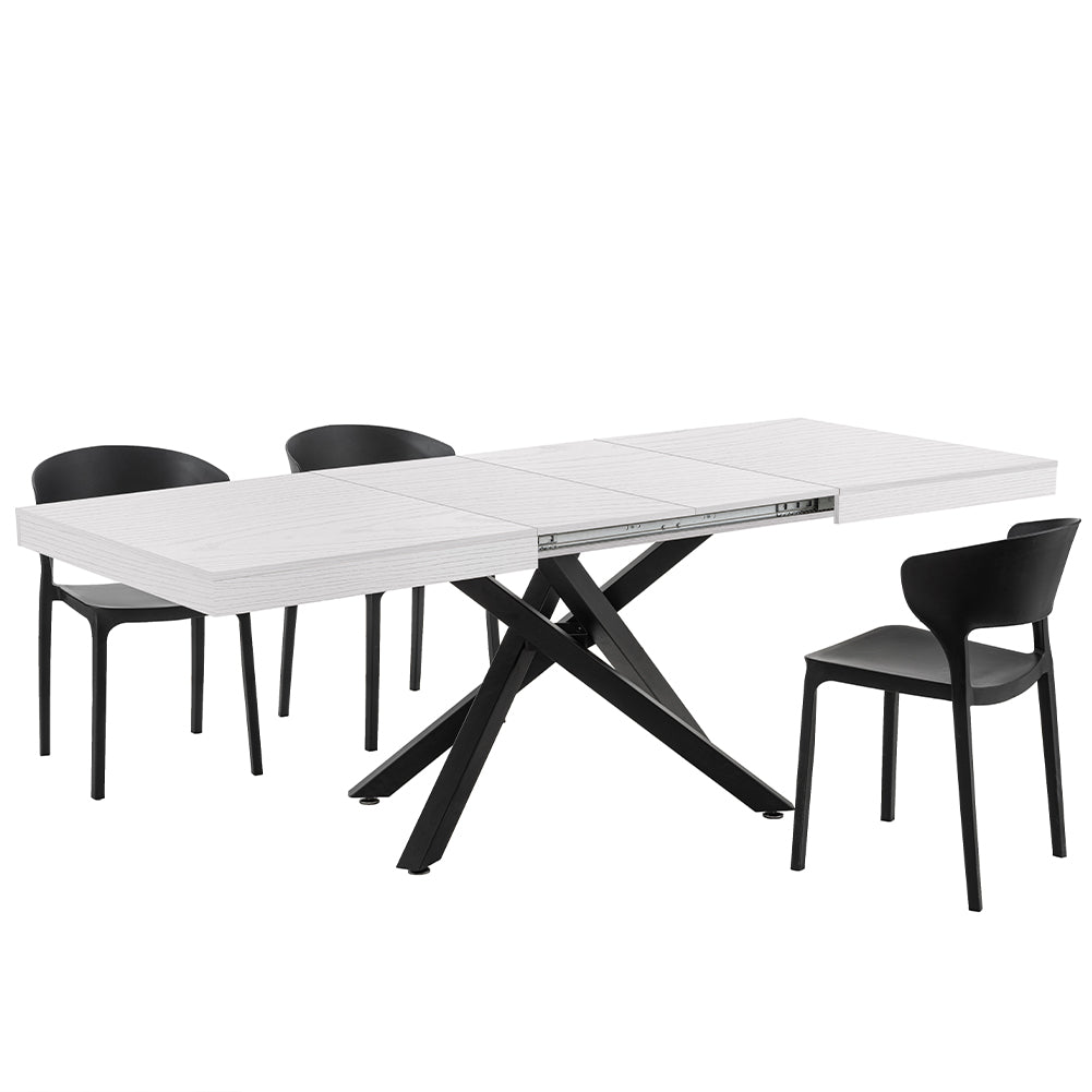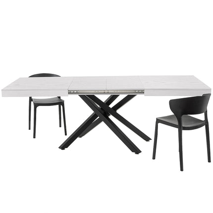 Dimensioni compatte con estensione generosa: In posizione chiusa, il tavolo misura 140 x 90 x 75,5 cm, il che lo rende ideale per ambienti con spazio limitato. Tuttavia, grazie alle due tegole aggiuntive, il tavolo può essere esteso fino a 220 cm di lunghezza, offrendo una superficie spaziosa per cene con ospiti o riunioni di famiglia. Questo rende il tavolo estremamente versatile, adatto sia a spazi più intimi che a situazioni che richiedono maggiore capienza.