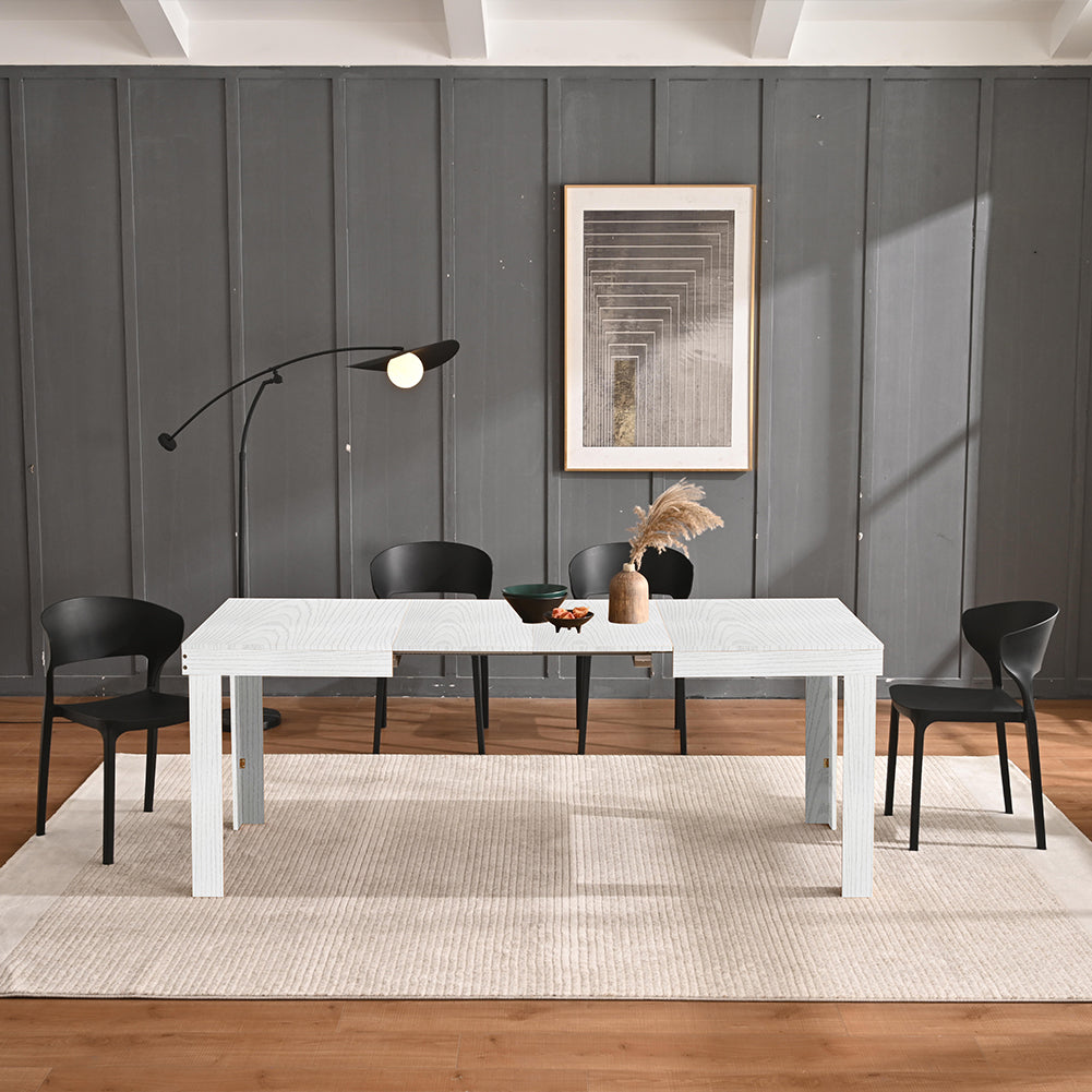 Il meccanismo di allungamento è pratico e intuitivo: in pochi secondi il tavolo si trasforma, estendendo la superficie fino a 200 cm per ospitare comodamente più persone, ideale per cene in famiglia o con amici.