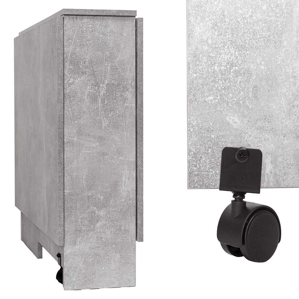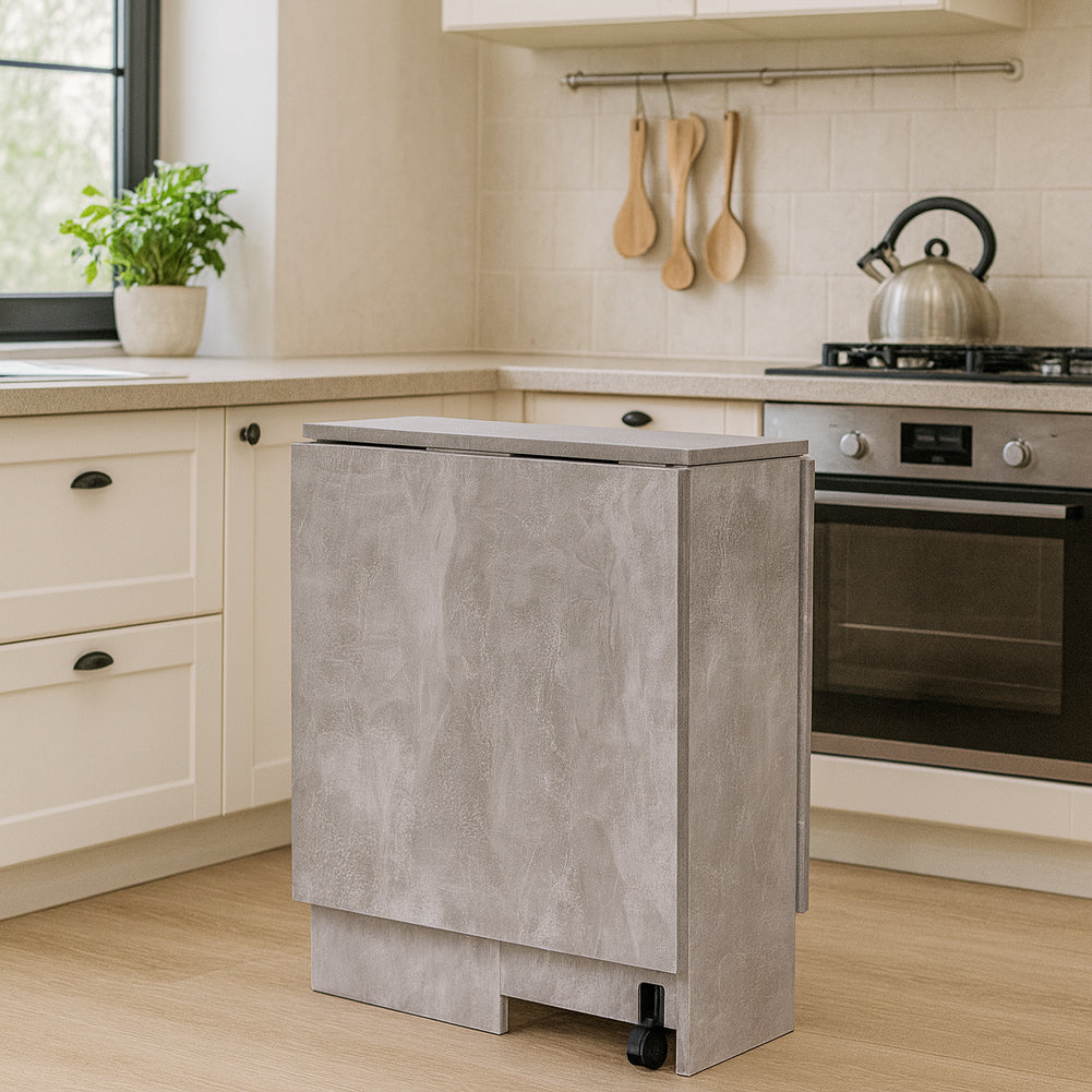 Questo tavolo pieghevole unisce estetica contemporanea e praticità, grazie alla finitura effetto cemento che dona carattere ad ogni ambiente.