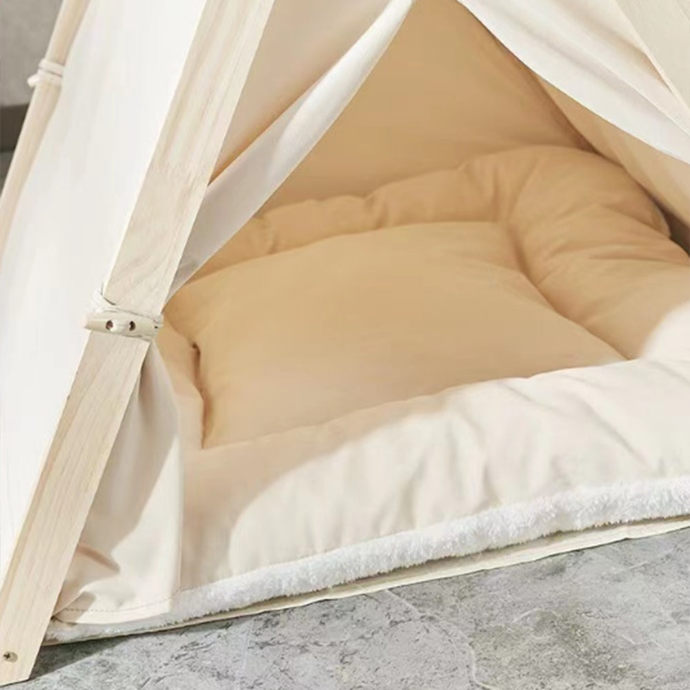 1 x Tenda da Gioco per Animali Domestici Interni o Esterni in Legno e Tessuto Beige