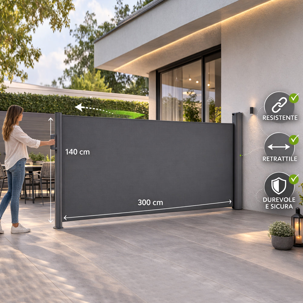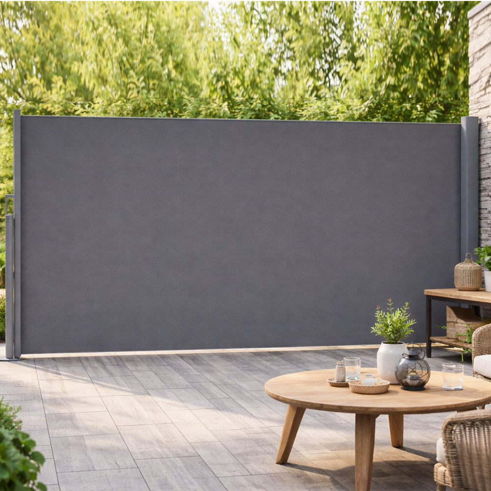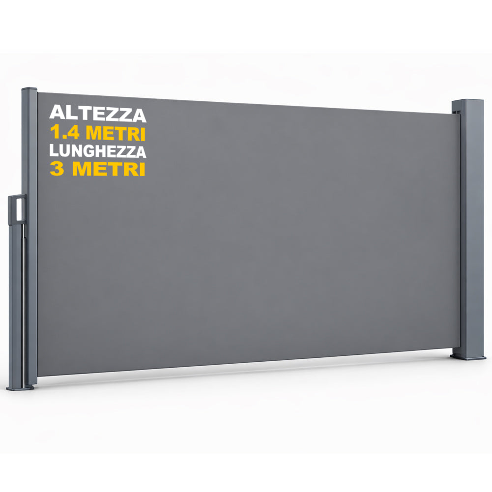 1 x Tenda Sole Laterale Retrattile 1.4x3 Metri Telo Frangivista Avvolgibile Grigio