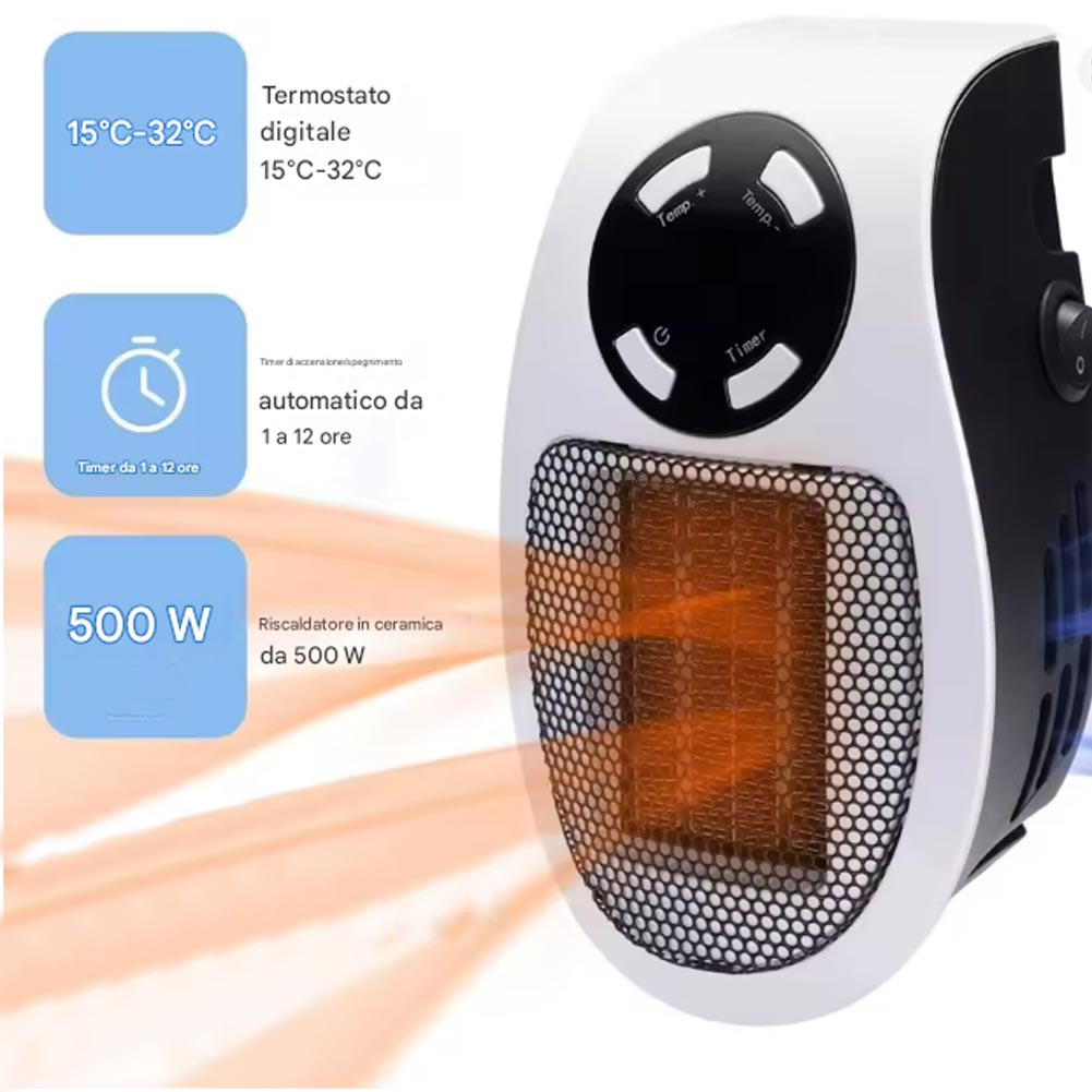 Termoventilatore Mini Stufa Scaldabagno Elettrico con Telecomando e 2 Velocità