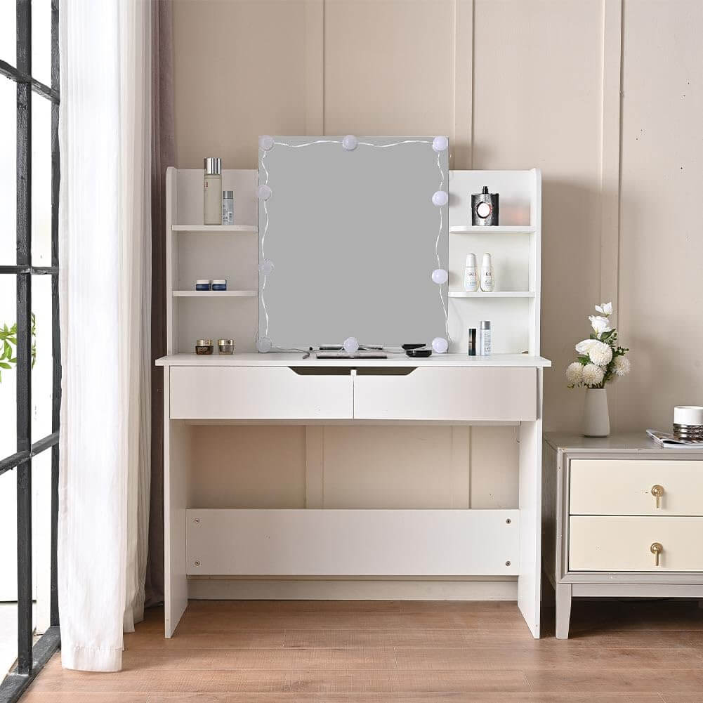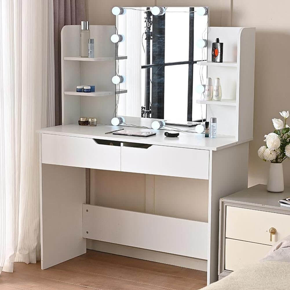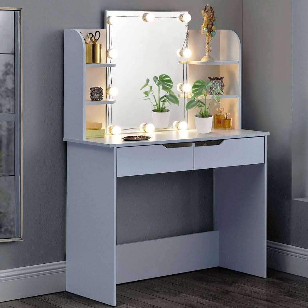 La toeletta possiede un design senza tempo, con cassetti e ripiani che ti consentiranno di riporre i tuoi oggetti una volta terminato, come prodotti per la cura della pelle, orecchini, libri, documenti, chiavi, medicinali, ecc.