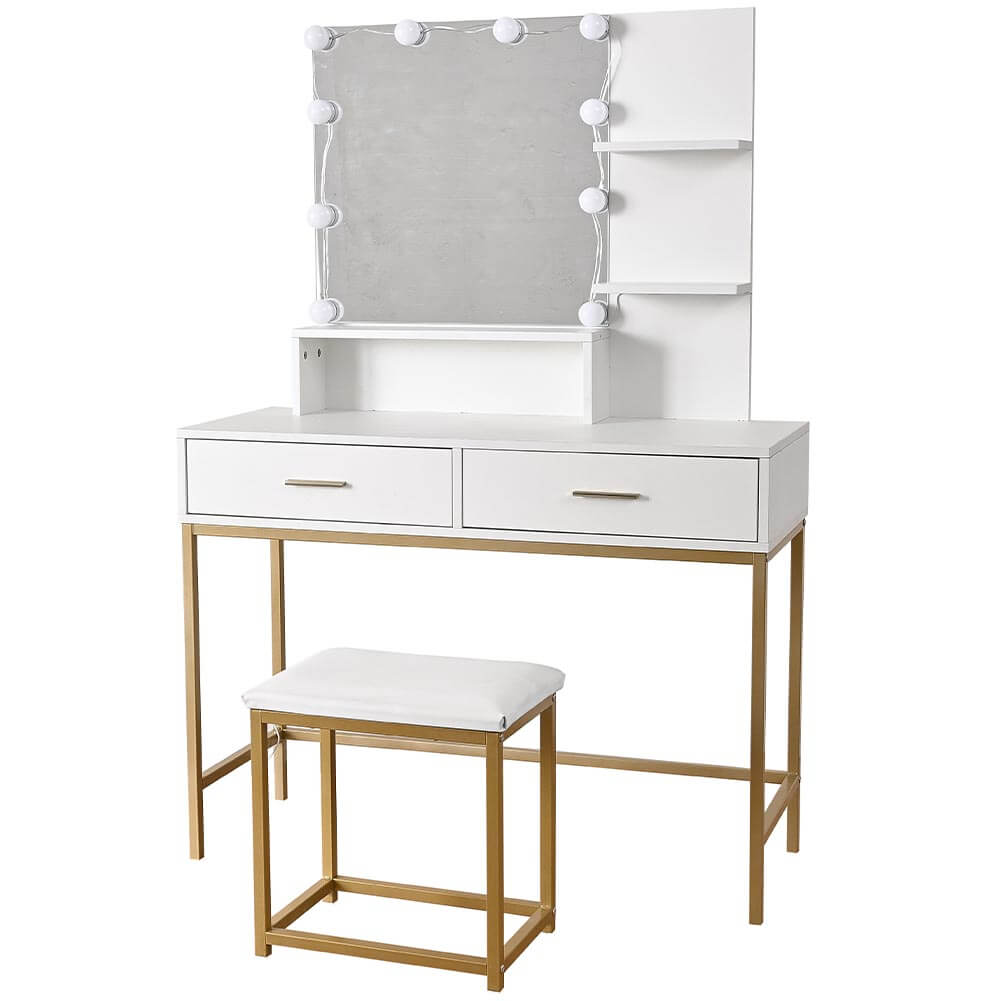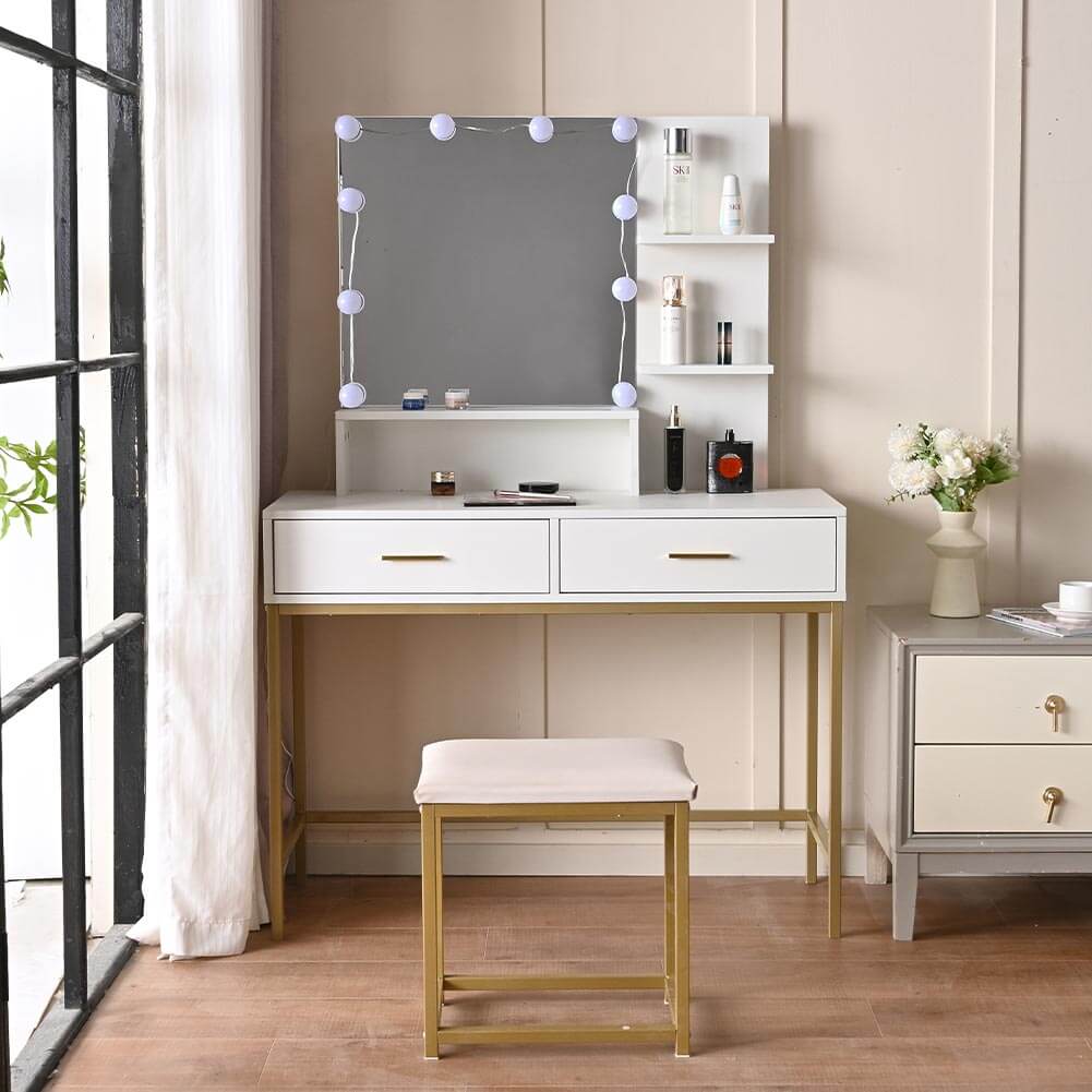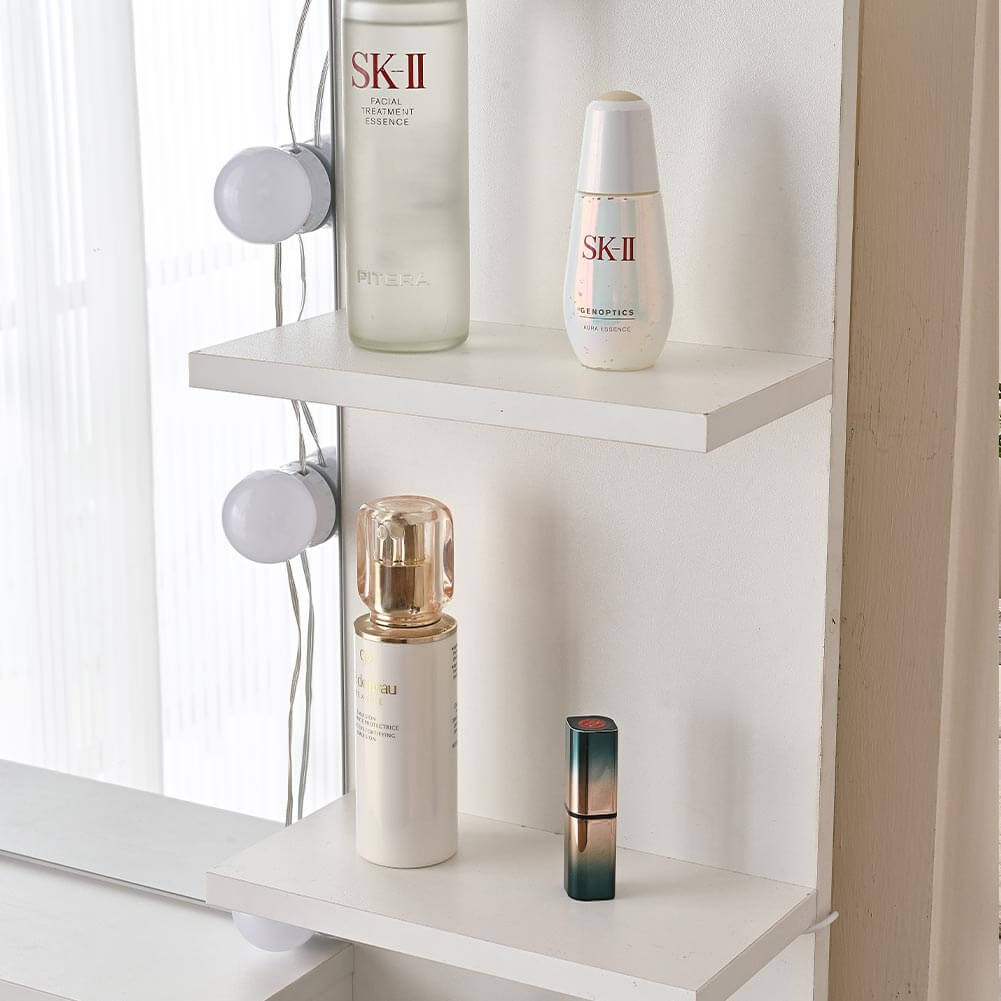 La toeletta possiede un design senza tempo, con cassetti e ripiani che ti consentiranno di riporre i tuoi oggetti una volta terminato, come prodotti per la cura della pelle, orecchini, libri, documenti, chiavi, medicinali, ecc.