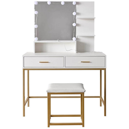 La splendida toeletta trucco modello Sofia è dotata di uno specchio squadrato, con l'aggiunta di luci che ti aiuteranno a specchiarti, truccarti e sistemarti nel più comodo dei modi.