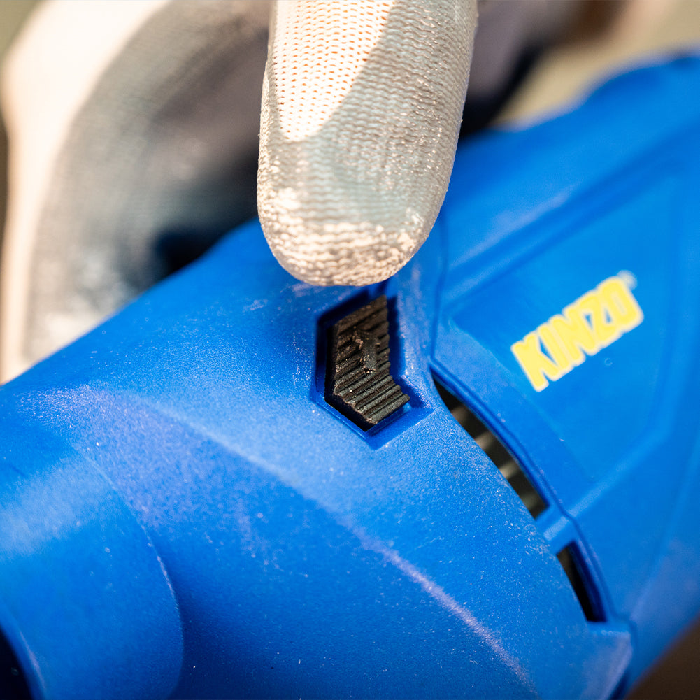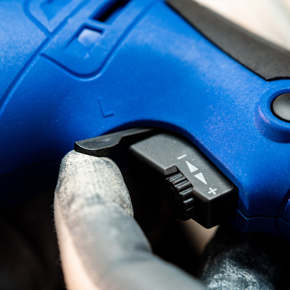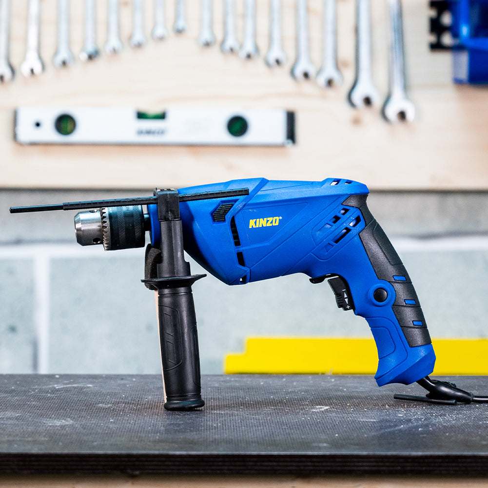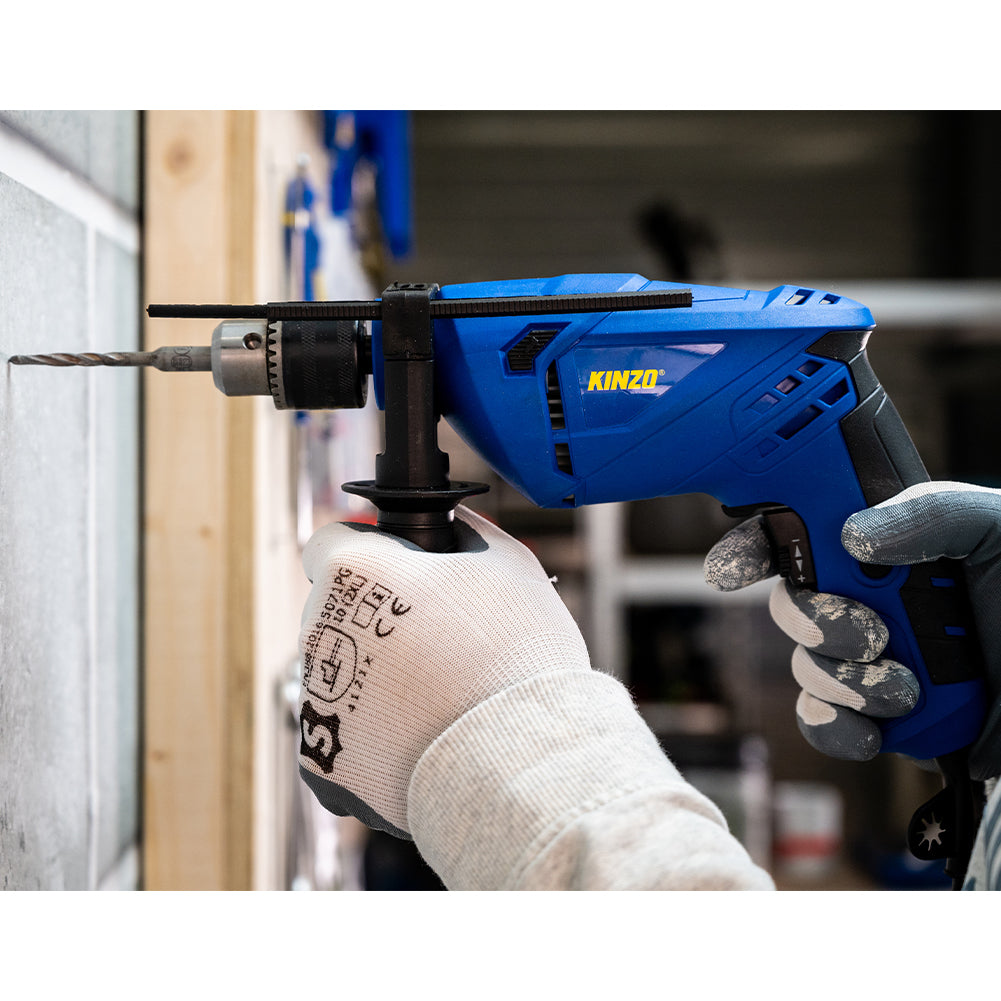 Non solo il misuratore di profondità garantisce una foratura precisa, infatti puoi perforare in modo ancora più controllato grazie allo speciale controllo della velocità nell'interruttore del trapano a percussione che troverai direttamente sotto l'interruttore on/off del trapano.