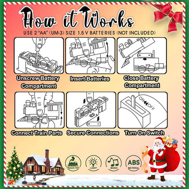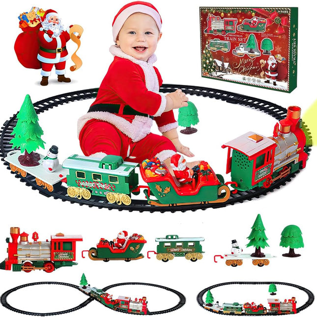 Trenino Natalizio Sotto Albero 22 Pezzi Locomotiva Luci Suoni Slitta Babbo Natale