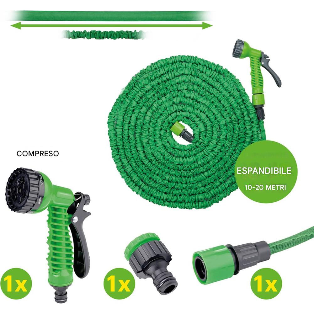 Tubo da Giardino Flessibile Estensibile Fino a 20 Metri Pompa Acqua Salvaspazio