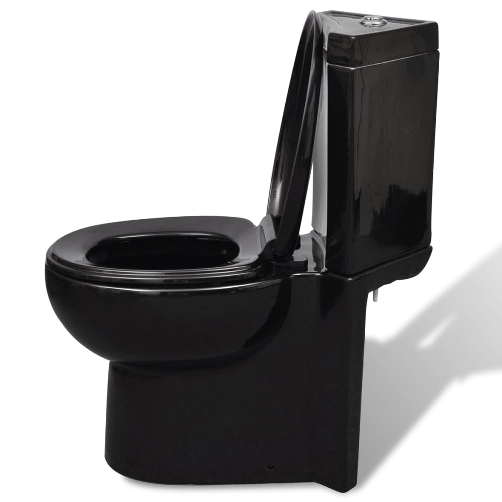 Vaso WC in Ceramica Sanitario da Bagno ad Angolo Colore Nero Chiusura Soft