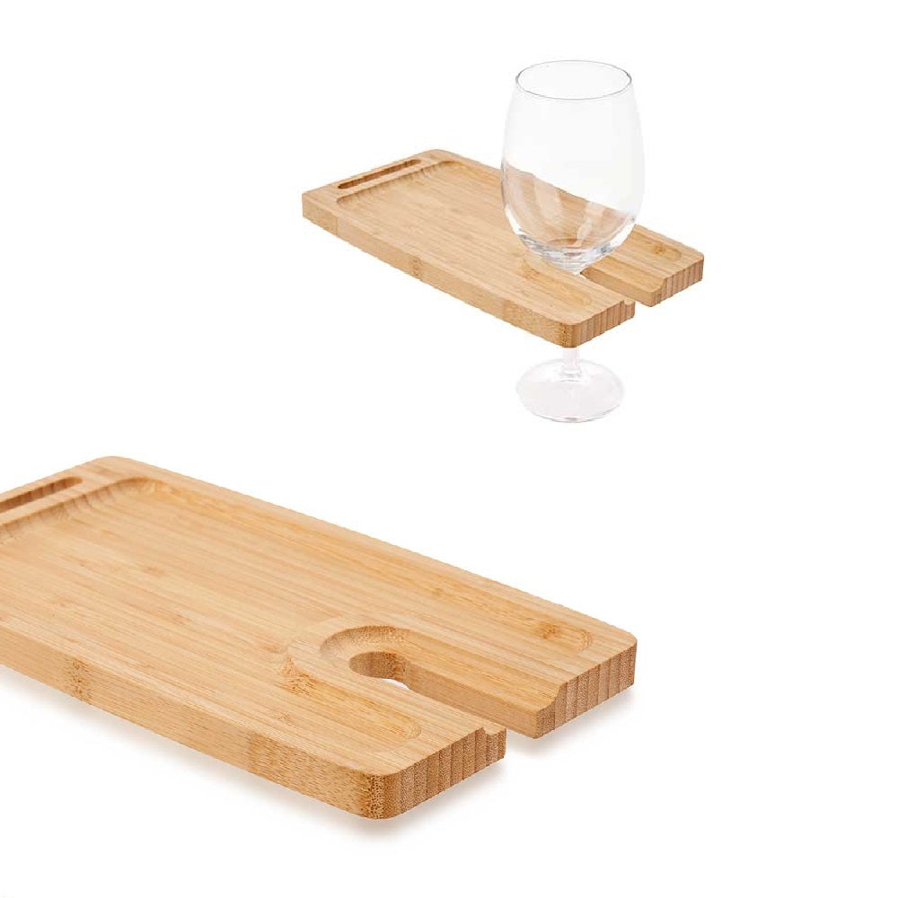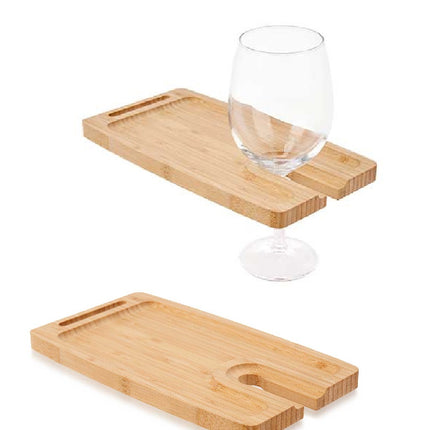 Vassoio Aperitivo Porta Bicchiere in Legno di Bambù 2pz 26x14cm Colore Naturale