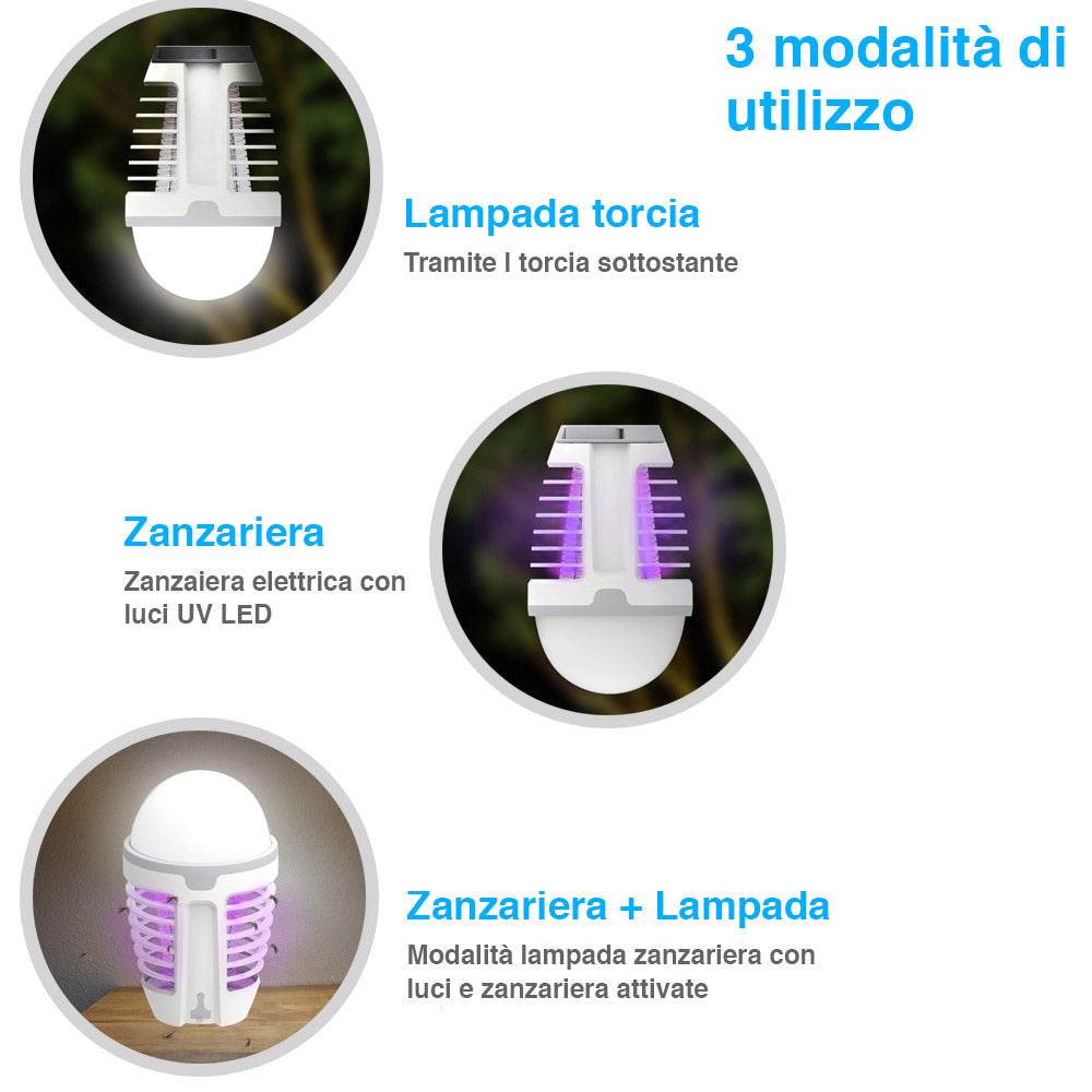 Zanzariera Elettrica Torcia Lampad LED Campeggio Anti Zanzare Batteria