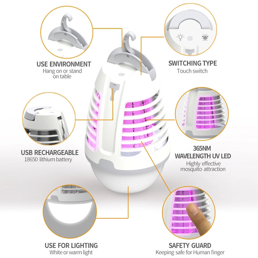 1 x Zanzariera Elettrica Torcia Lampada LED Campeggio Anti Zanzare Batteria Litio USB